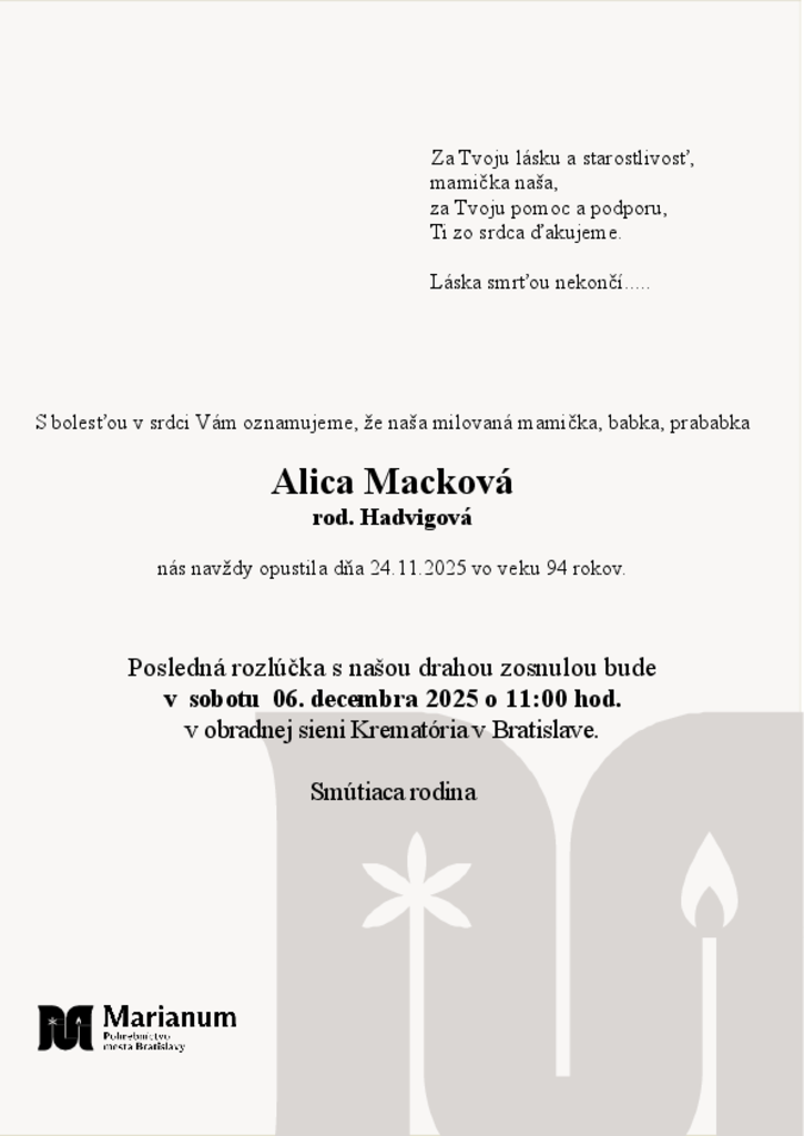 Napíšte odkaz pre pozostalých a uctite si pamiatku zosnulého zapálením virtuálnej sviečky.