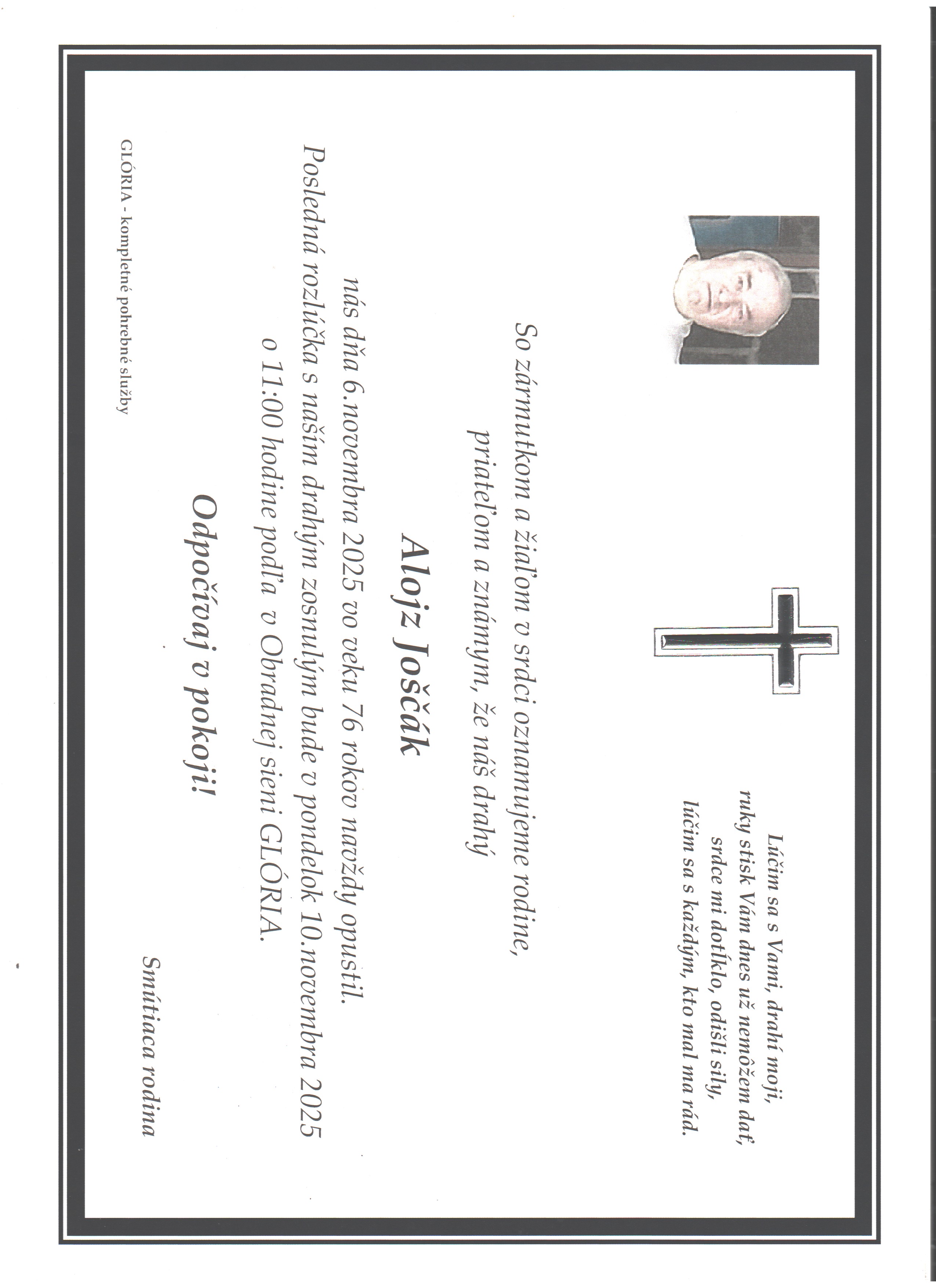 Pohreb zabezpečuje: Pohrebníctvo Glória Prešov