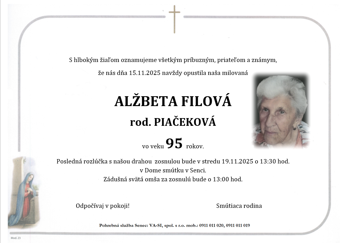 Pohreb zabezpečuje: Pohrebná služba VA-SI