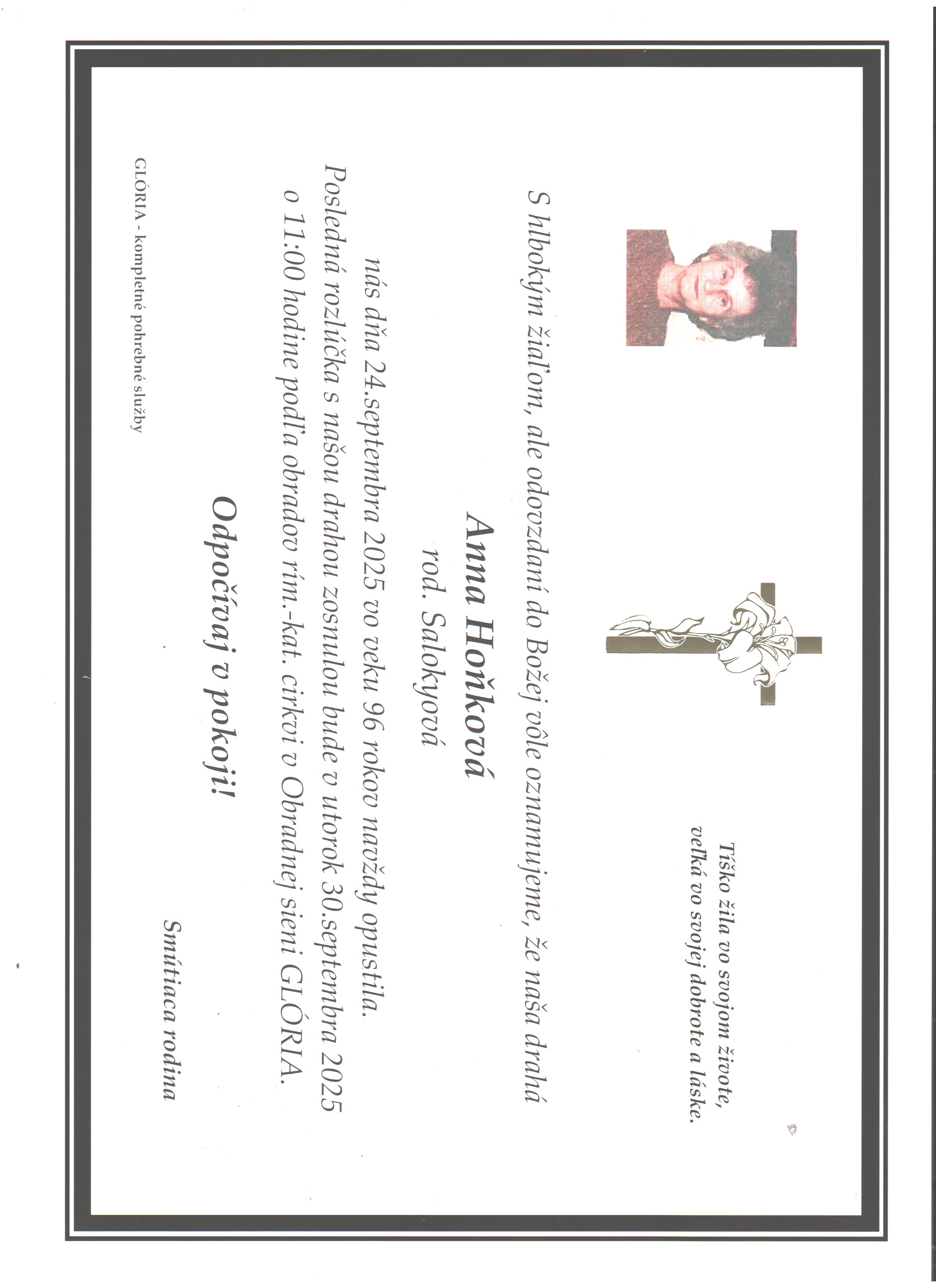 Pohreb zabezpečuje: Pohrebníctvo Glória Prešov