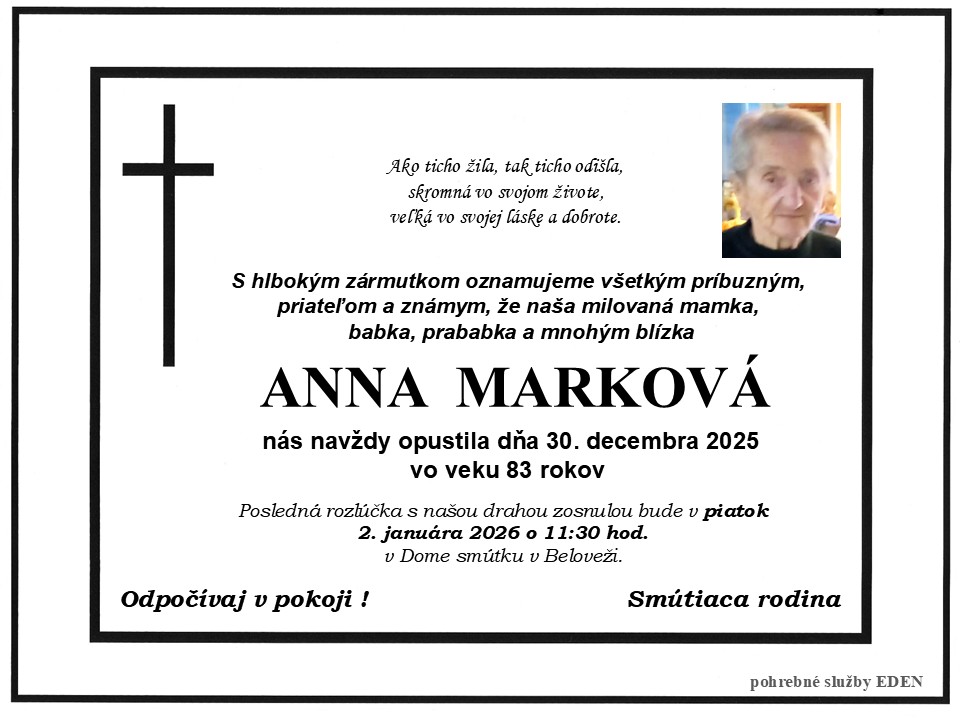 Pohreb zabezpečuje: Pohrebné služby Eden