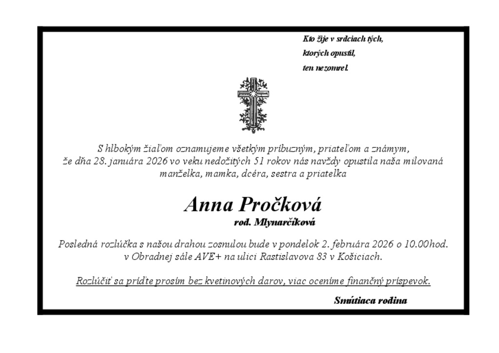 S veľkým žiaľom v našich srdciach prijmite od nás hlbokú a úprimnú sústrasť. Anička, odpočívaj v pokoji.