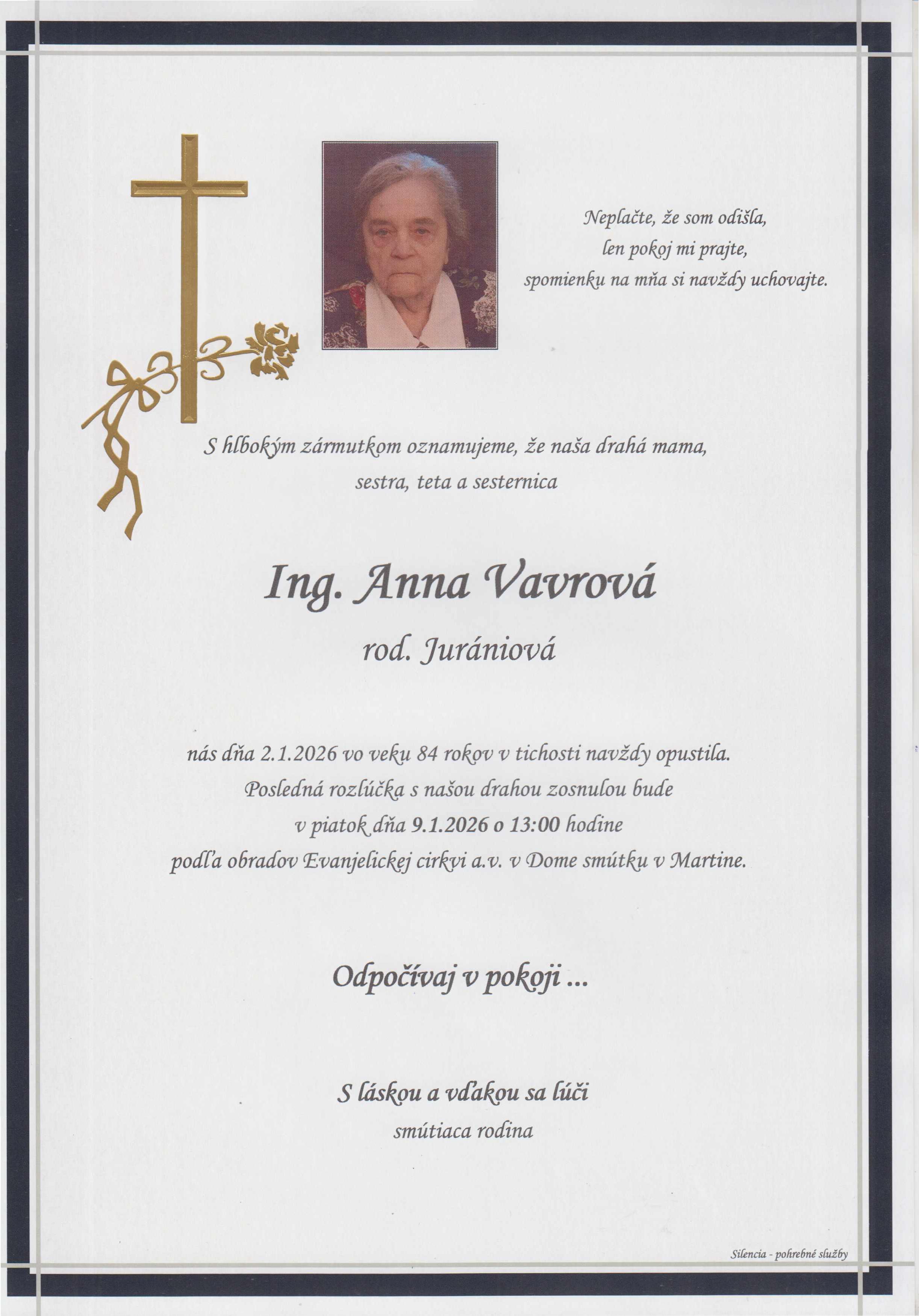 Pohreb zabezpečuje: Pohrebníctvo Silencia