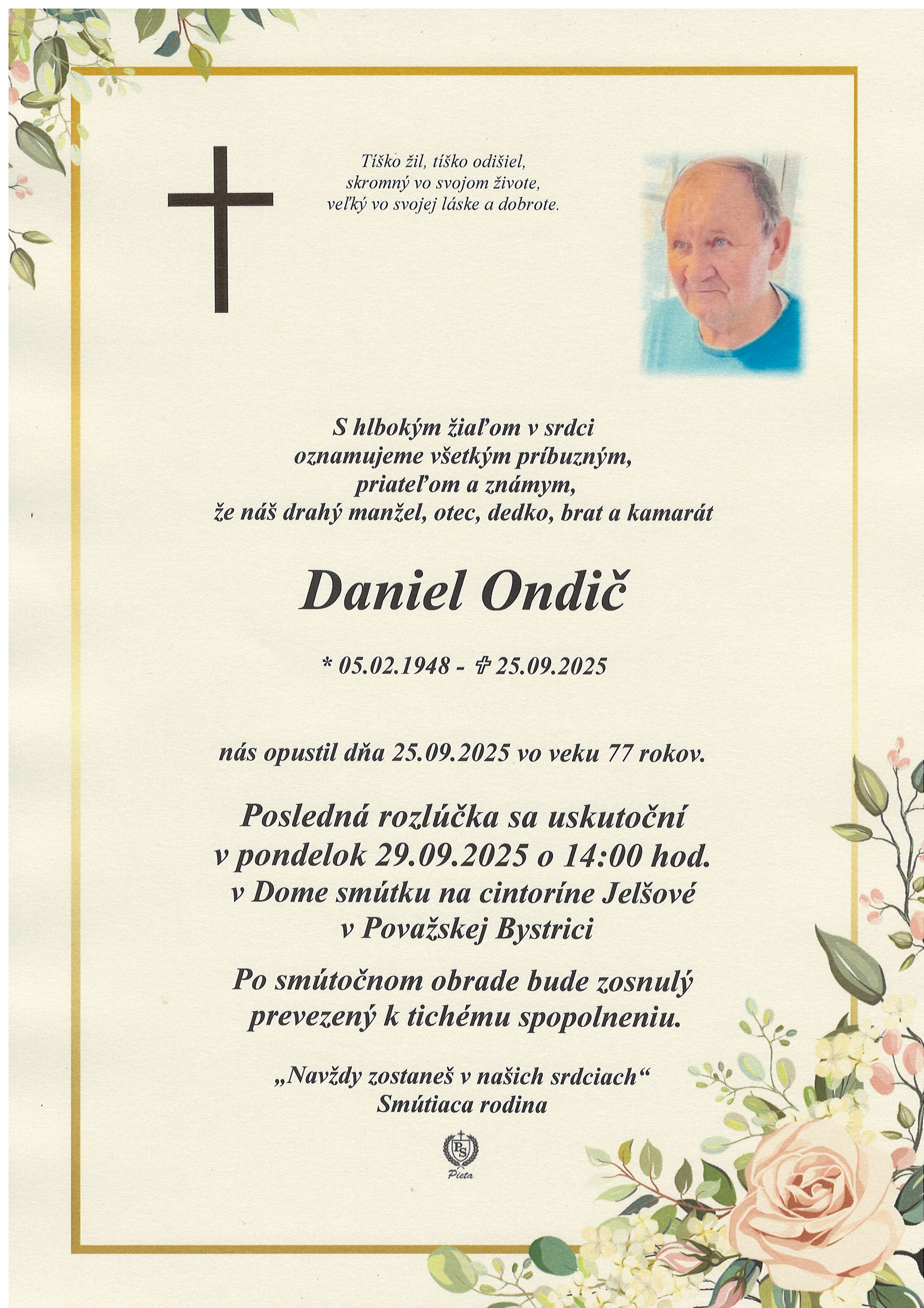 Pohreb zabezpečuje: Pavol Slamka Pieta