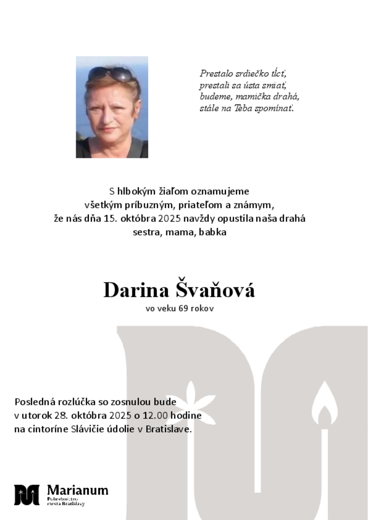 Napíšte odkaz pre pozostalých a uctite si pamiatku zosnulého zapálením virtuálnej sviečky.