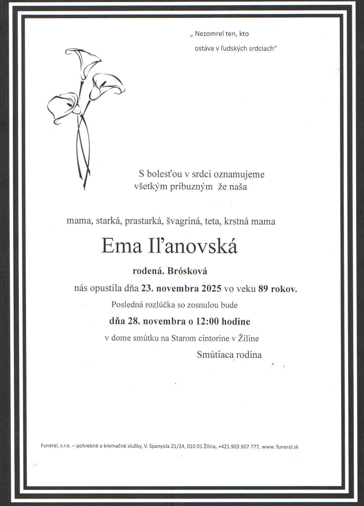 Pošlite smútočnú kyticu od 5€ priamo na poslednú rozlúčku. Doručenie zadarmo.
