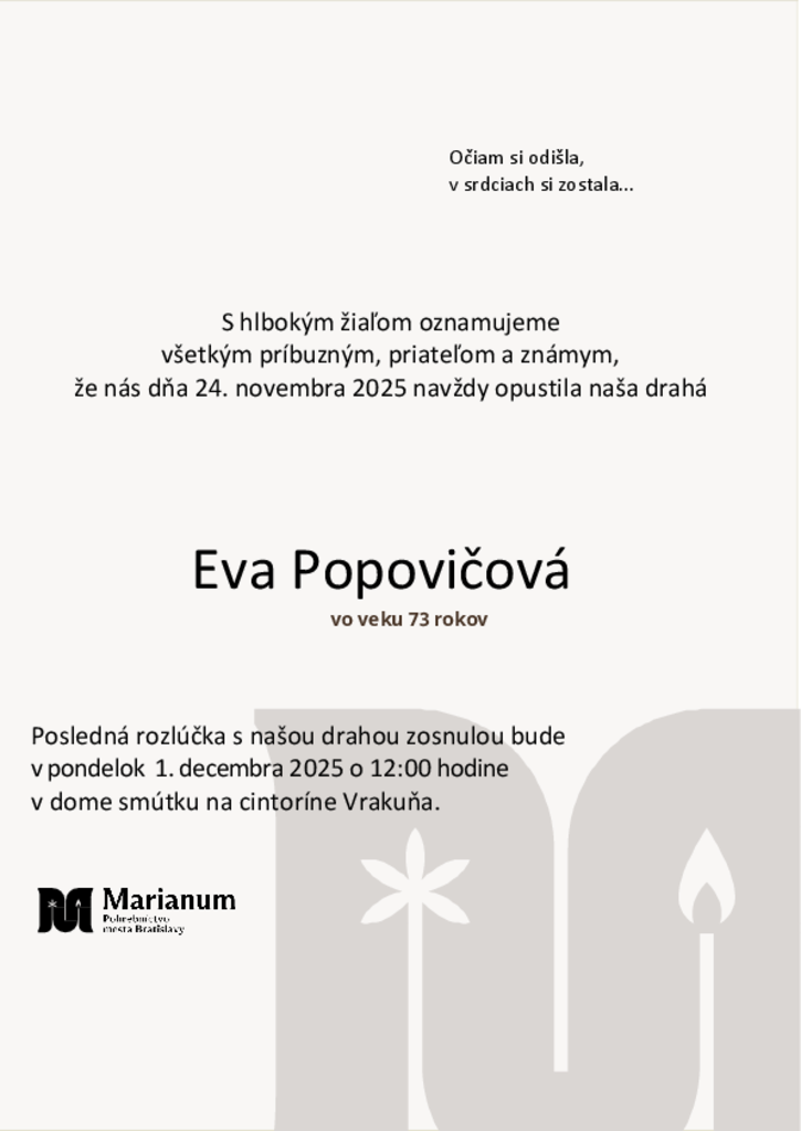 Napíšte odkaz pre pozostalých a uctite si pamiatku zosnulého zapálením virtuálnej sviečky.