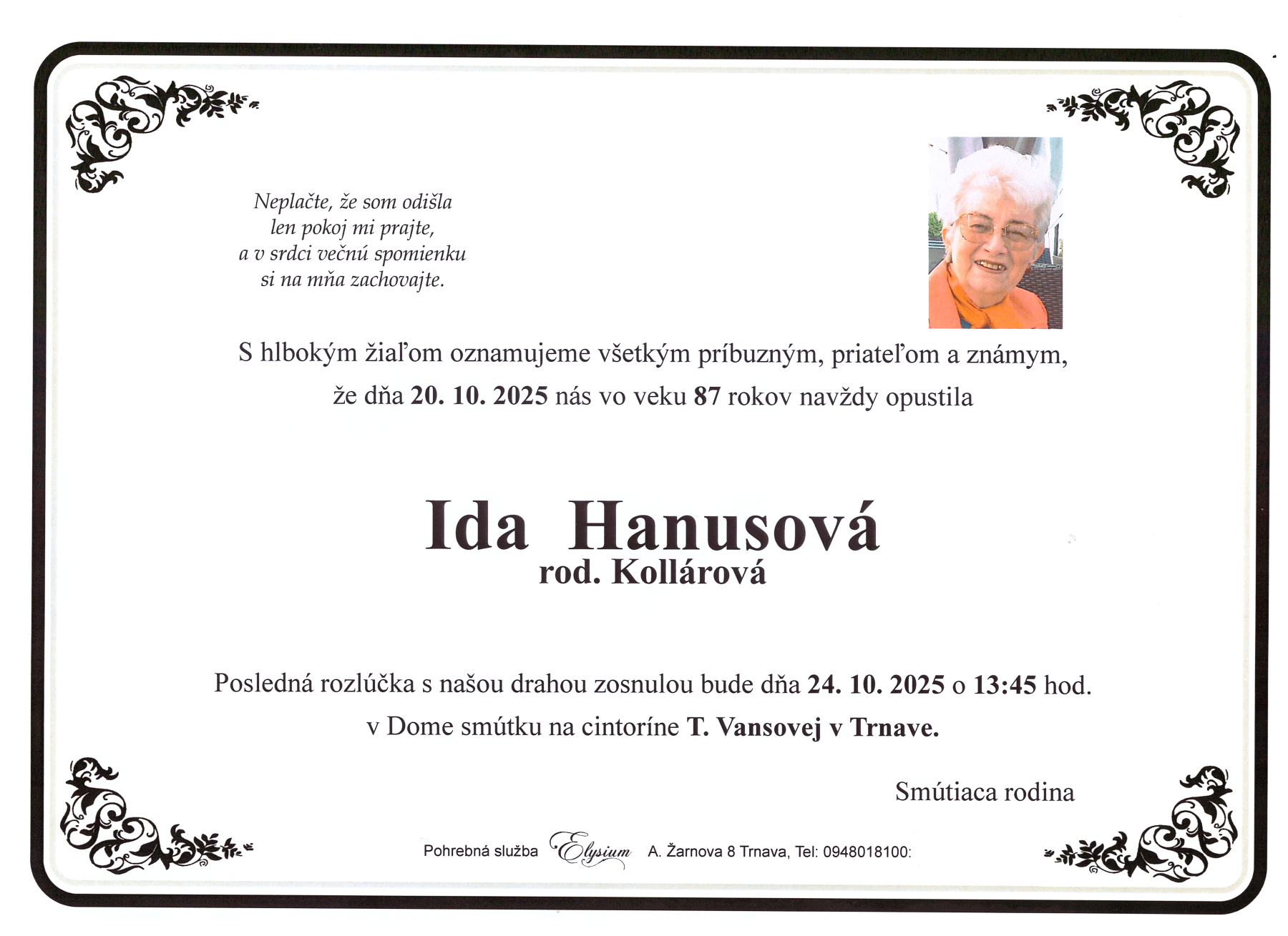 Prijmite moju úprimnú sústrasť, nech odpočíva p.Ida v pokoji a stretne sa so svojimi milovanými 🌿🙏