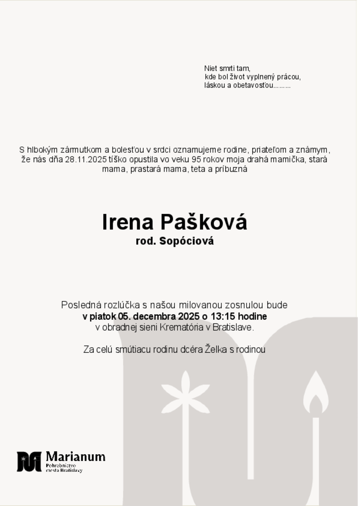 Napíšte odkaz pre pozostalých a uctite si pamiatku zosnulého zapálením virtuálnej sviečky.