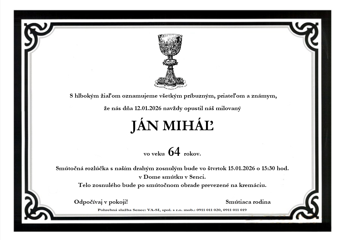 Pohreb zabezpečuje: Pohrebná služba VA-SI