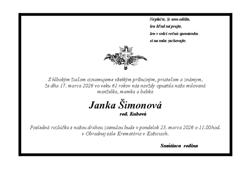 Pošlite smútočnú kyticu od 5€ priamo na poslednú rozlúčku. Doručenie zadarmo.