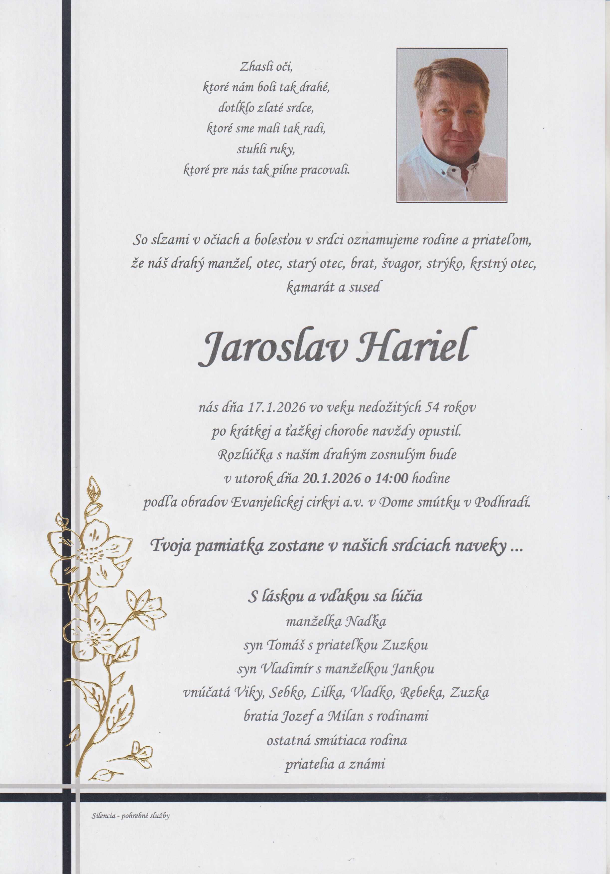 Pohreb zabezpečuje: Pohrebníctvo Silencia