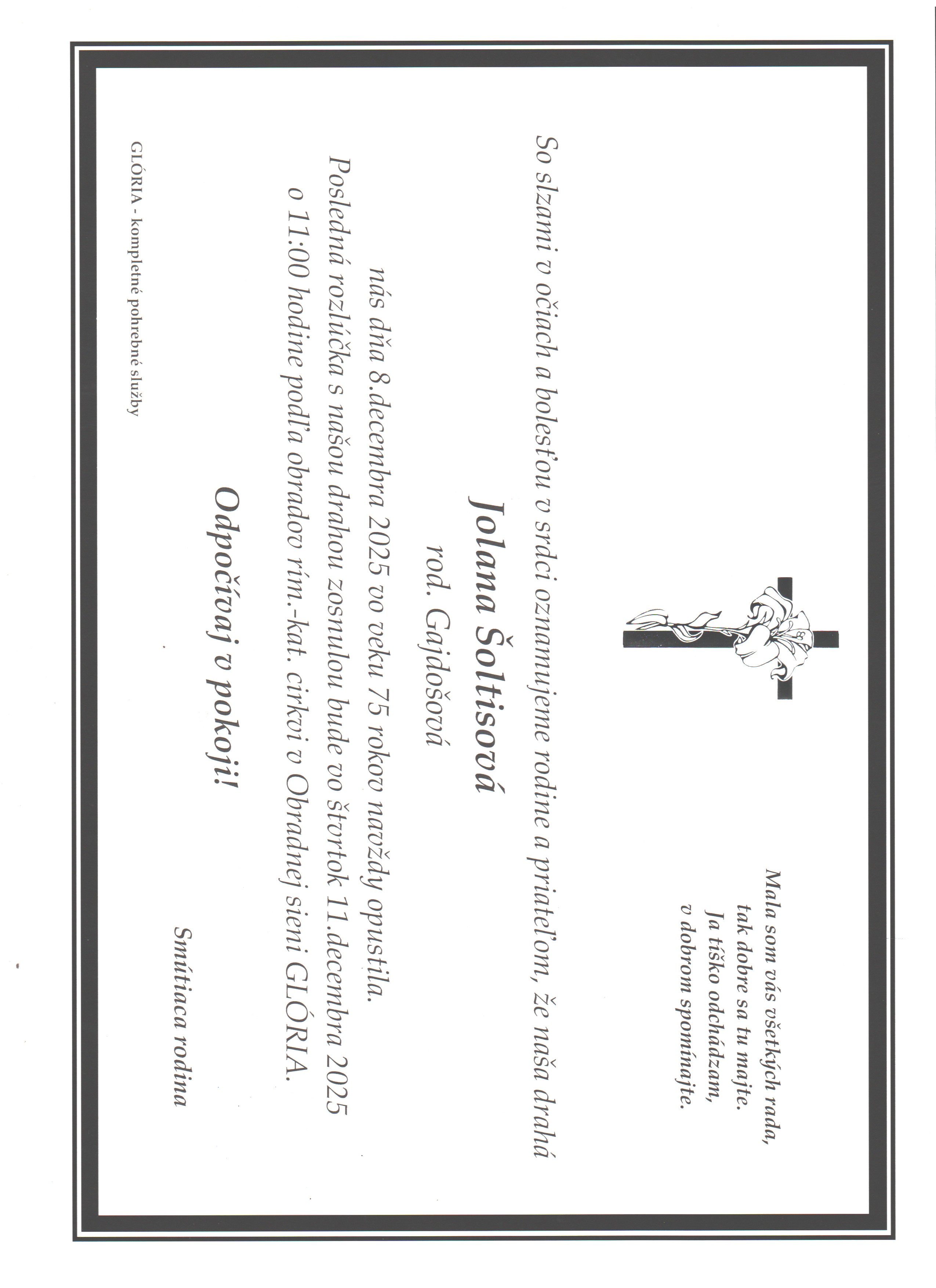 Pohreb zabezpečuje: Pohrebníctvo Glória Prešov