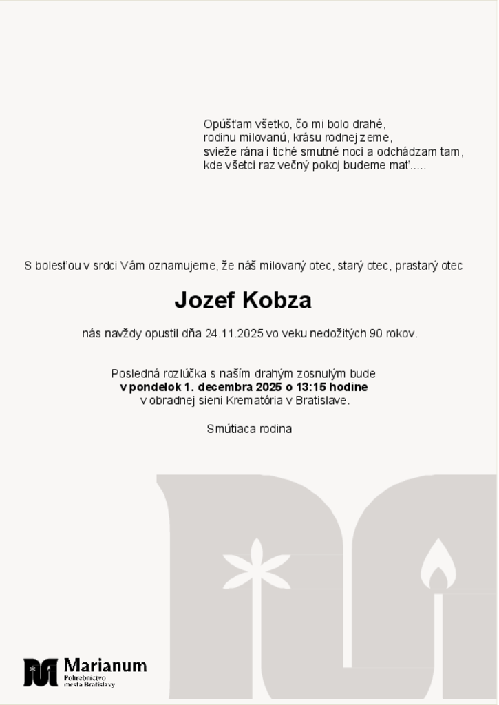 Napíšte odkaz pre pozostalých a uctite si pamiatku zosnulého zapálením virtuálnej sviečky.