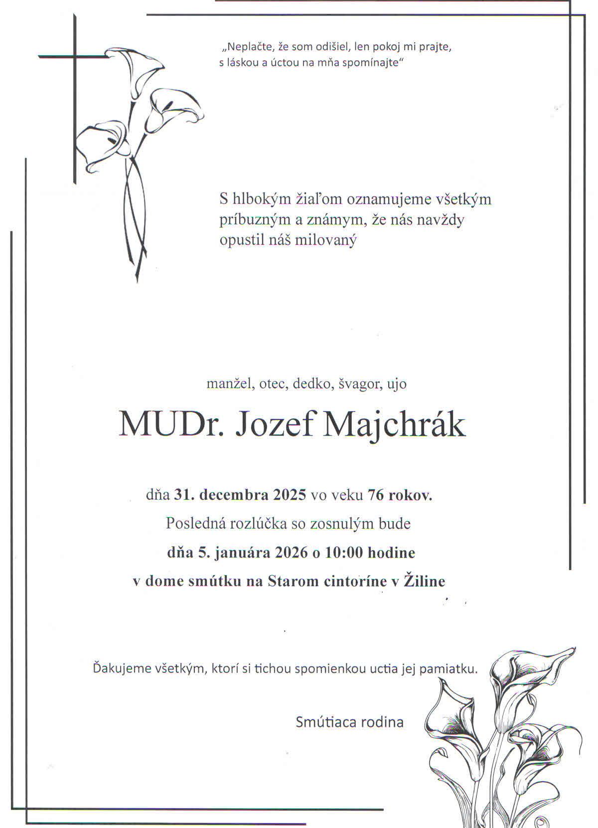 Pošlite smútočnú kyticu od 5€ priamo na poslednú rozlúčku. Doručenie zadarmo.