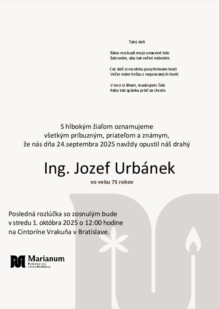 Napíšte odkaz pre pozostalých a uctite si pamiatku zosnulého zapálením virtuálnej sviečky.