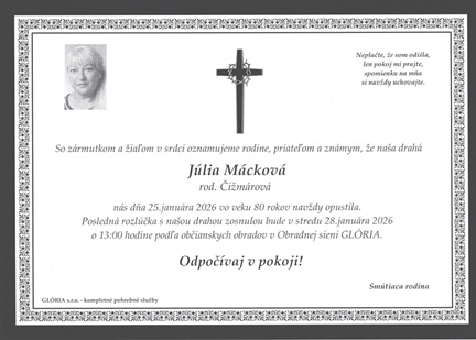 Pohreb zabezpečuje: Pohrebníctvo Glória Prešov