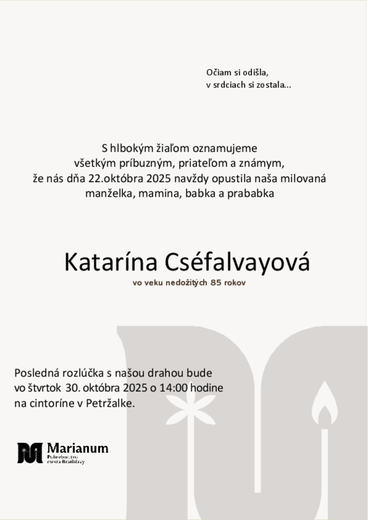 MARIANUM Pohrebníctvo mesta Bratislavy