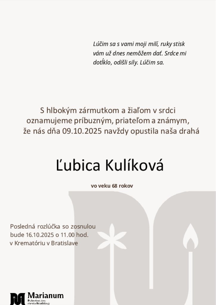 Napíšte odkaz pre pozostalých a uctite si pamiatku zosnulého zapálením virtuálnej sviečky.
