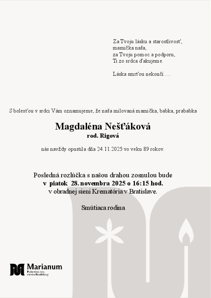 Napíšte odkaz pre pozostalých a uctite si pamiatku zosnulého zapálením virtuálnej sviečky.