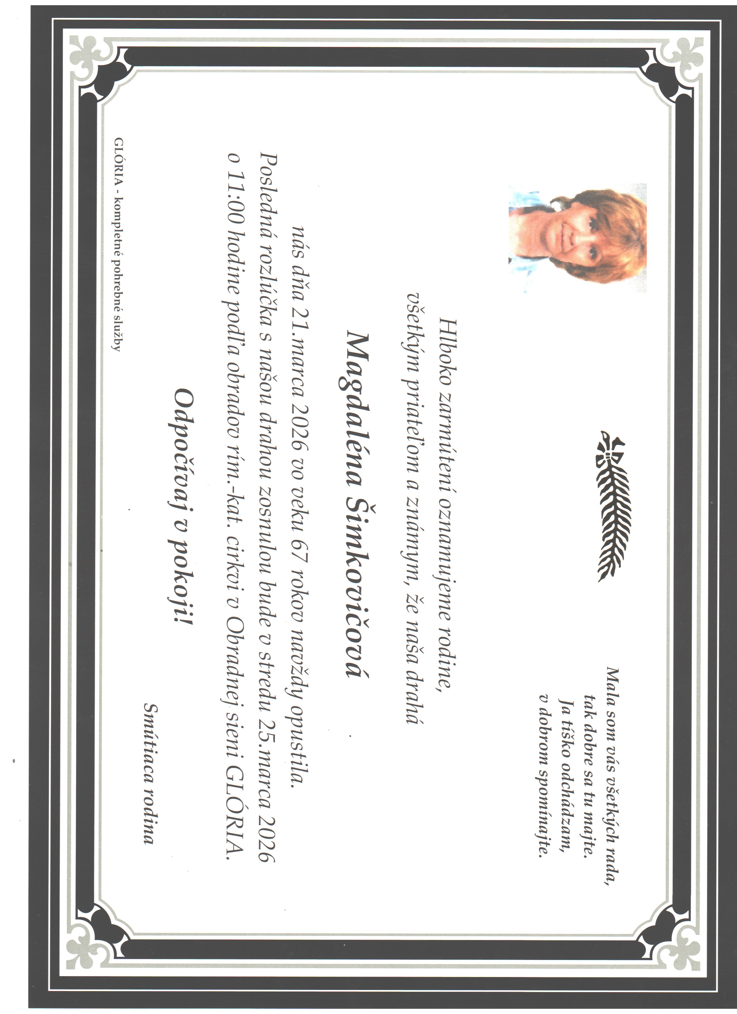 Pošlite smútočnú kyticu od 5€ priamo na poslednú rozlúčku. Doručenie zadarmo.