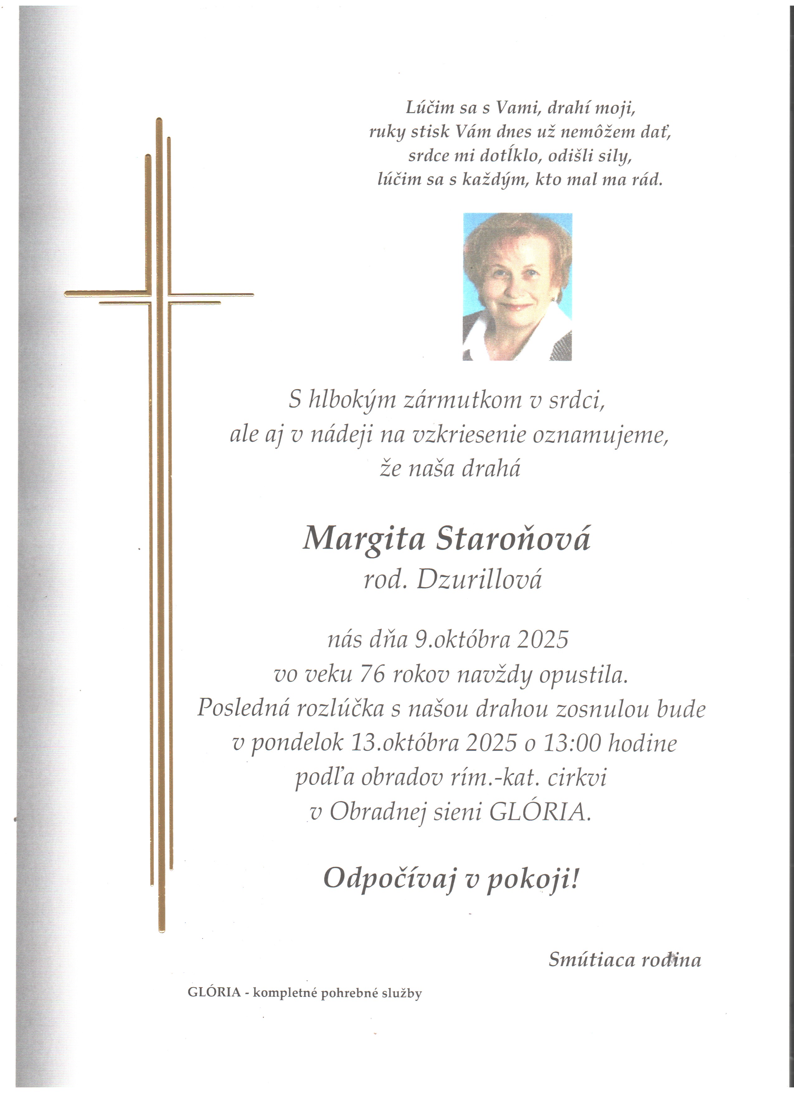 Pohreb zabezpečuje: Pohrebníctvo Glória Prešov
