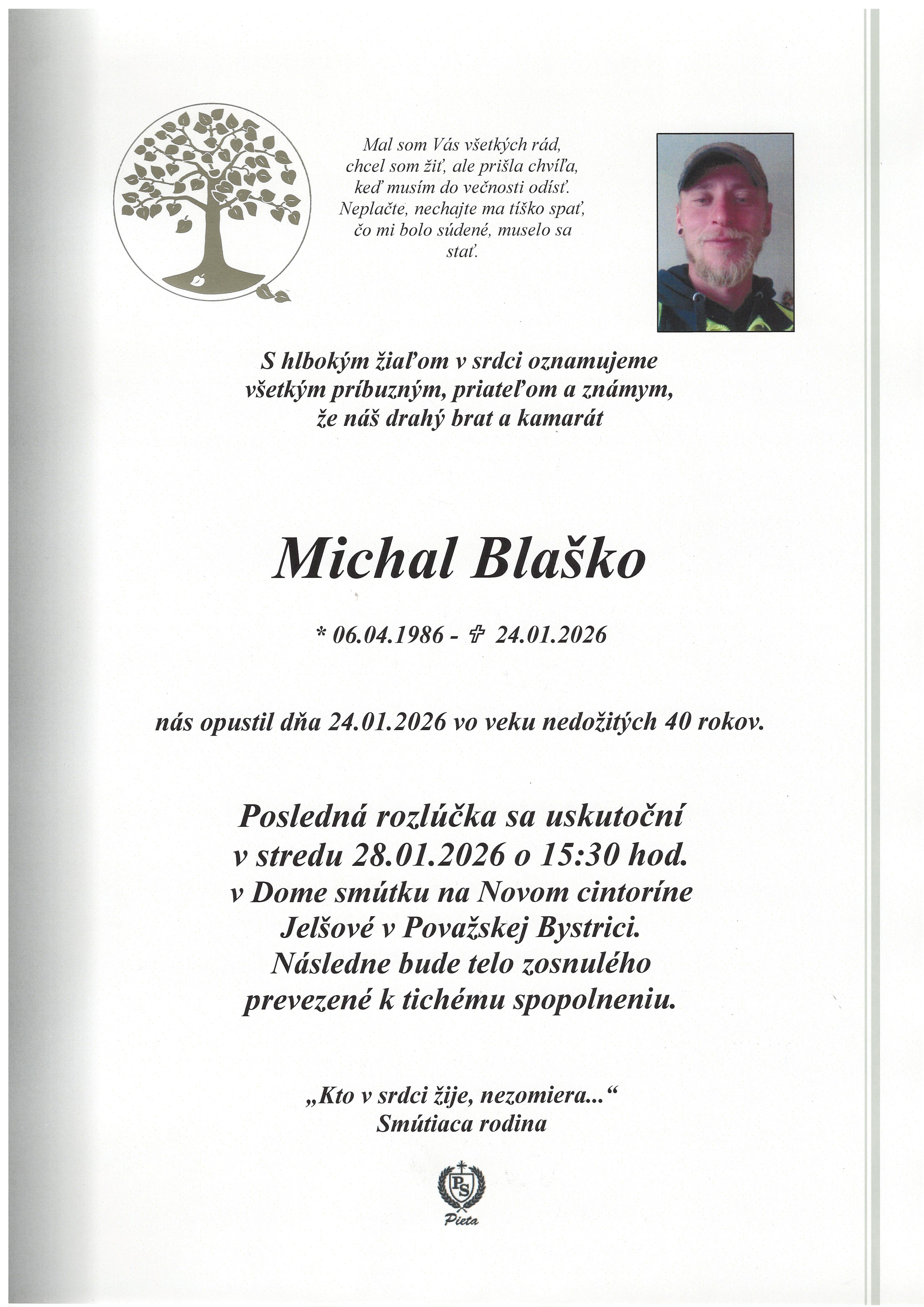 Pohreb zabezpečuje: Pavol Slamka Pieta