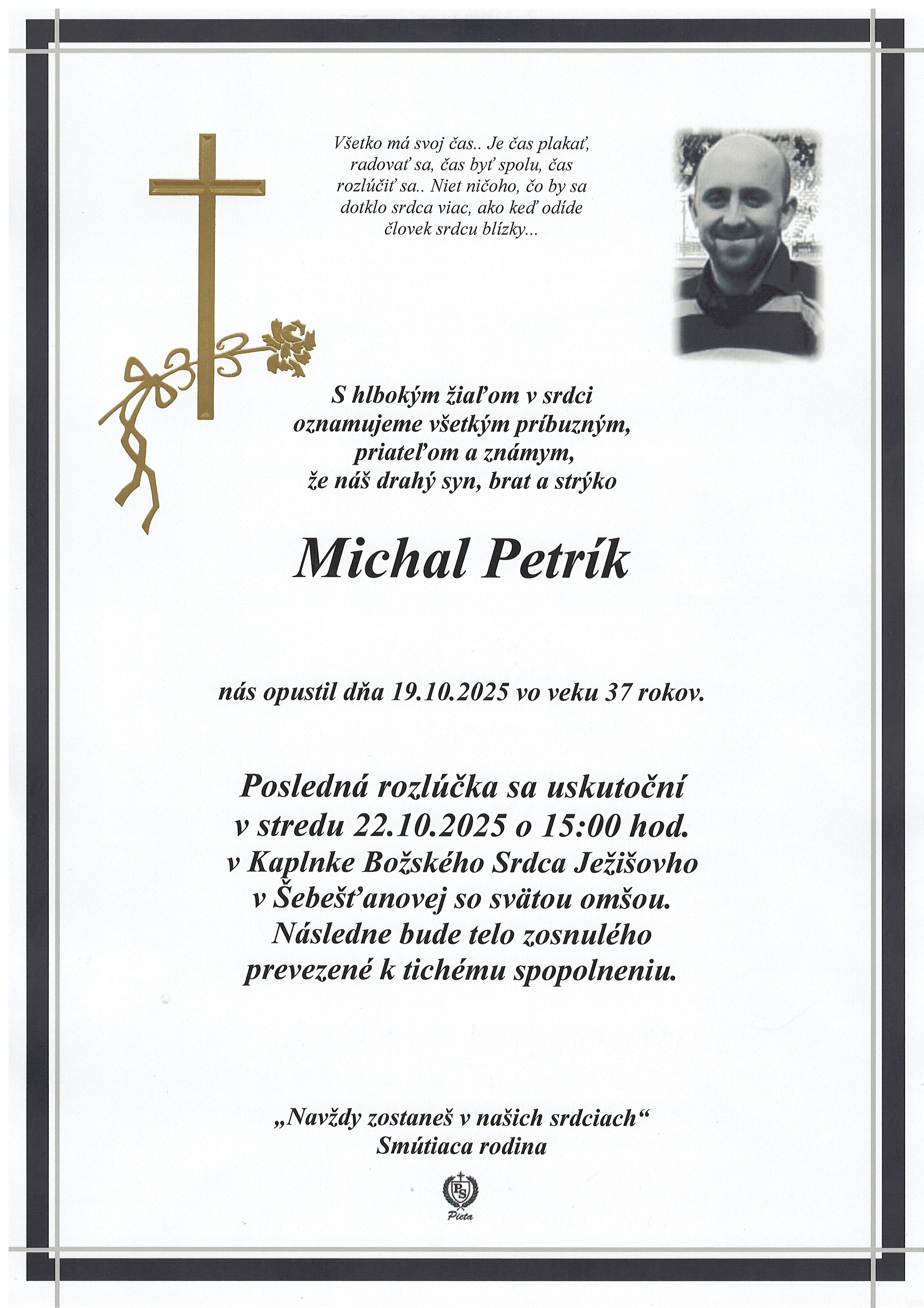 Odpočívaj tíško v pokoji - lúčim sa s úctou, láskou a vďakou, Matej
