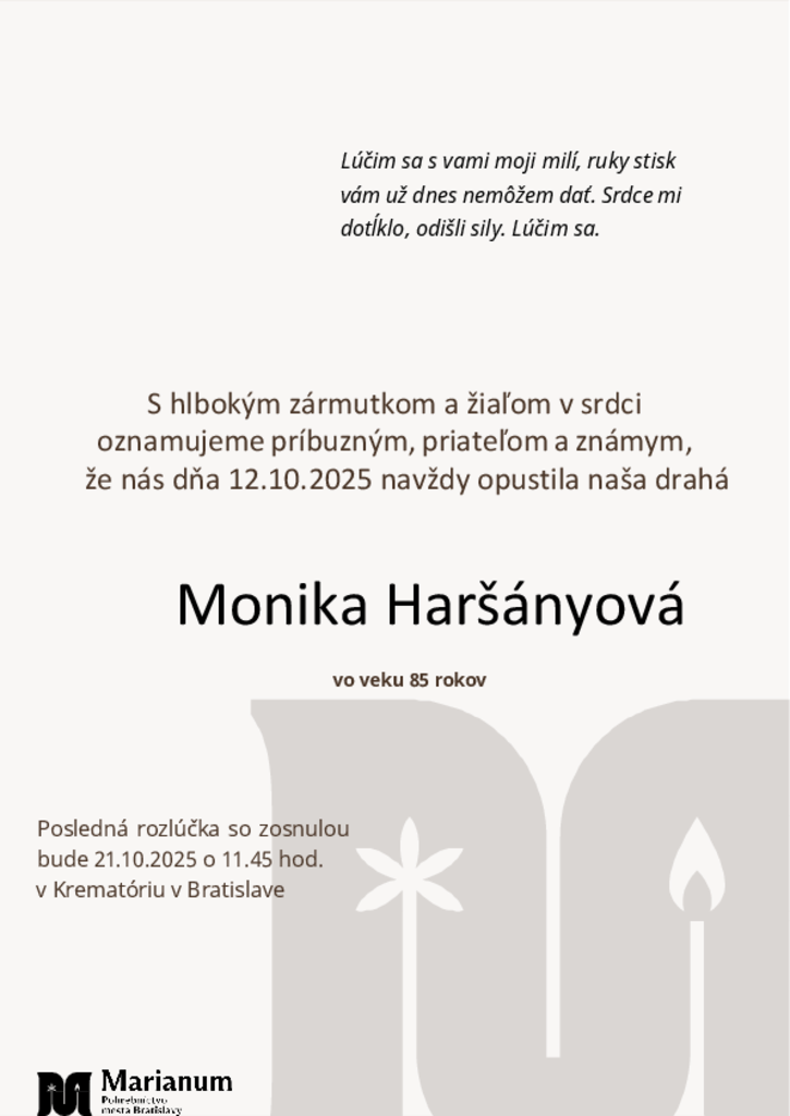 Napíšte odkaz pre pozostalých a uctite si pamiatku zosnulého zapálením virtuálnej sviečky.