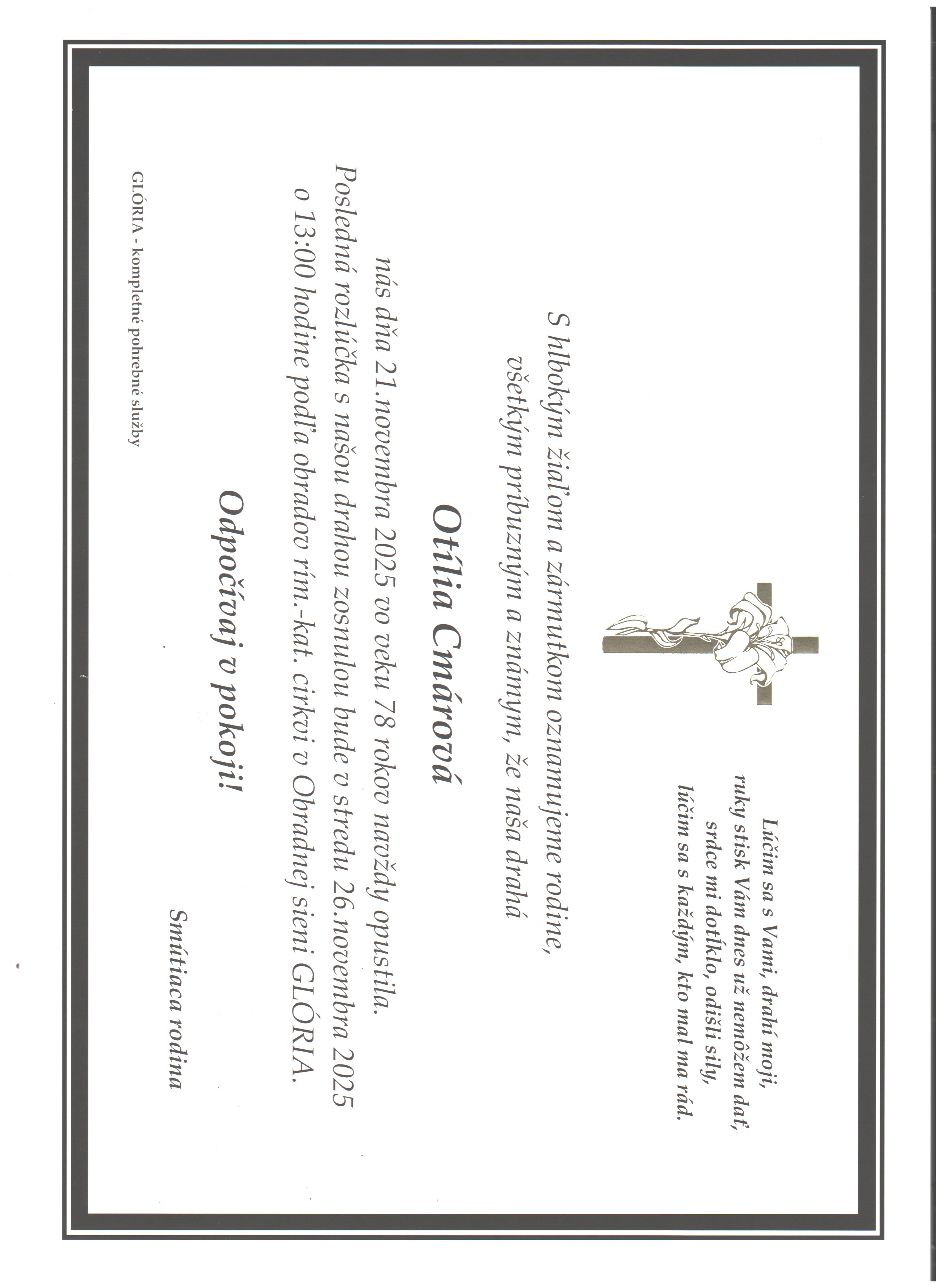 Pohreb zabezpečuje: Pohrebníctvo Glória Prešov