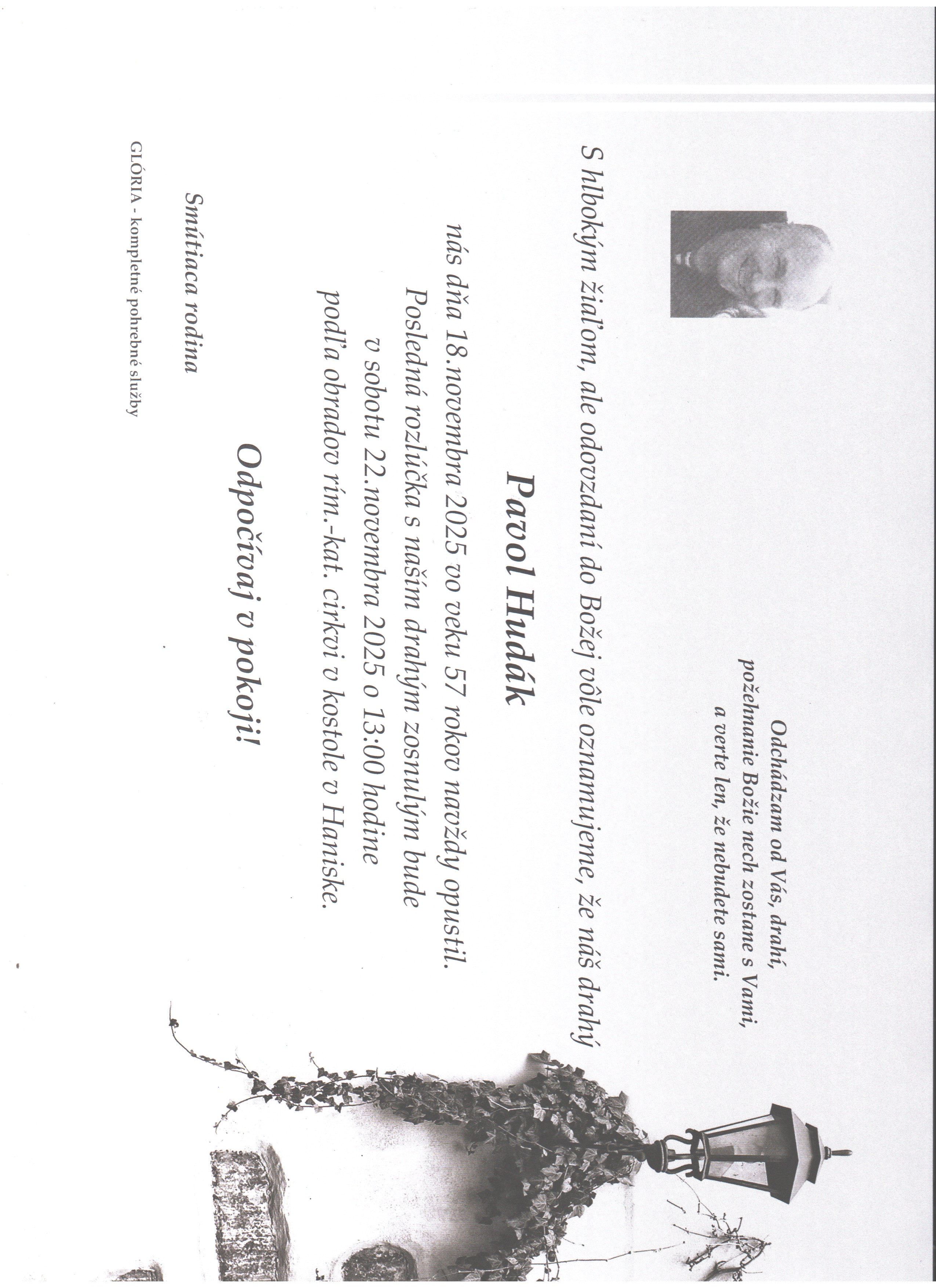 Pohreb zabezpečuje: Pohrebníctvo Glória Prešov