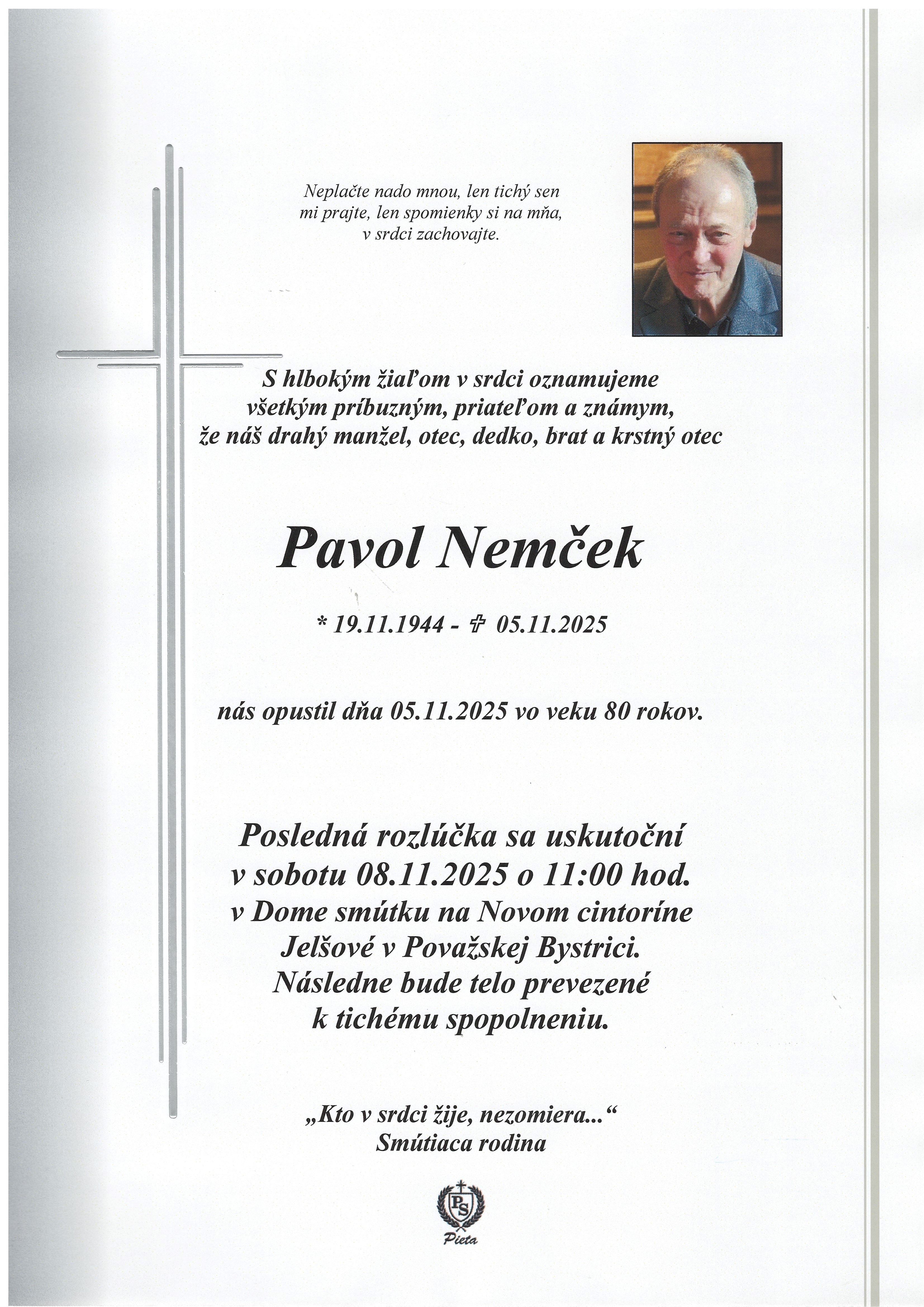 Pohreb zabezpečuje: Pavol Slamka Pieta