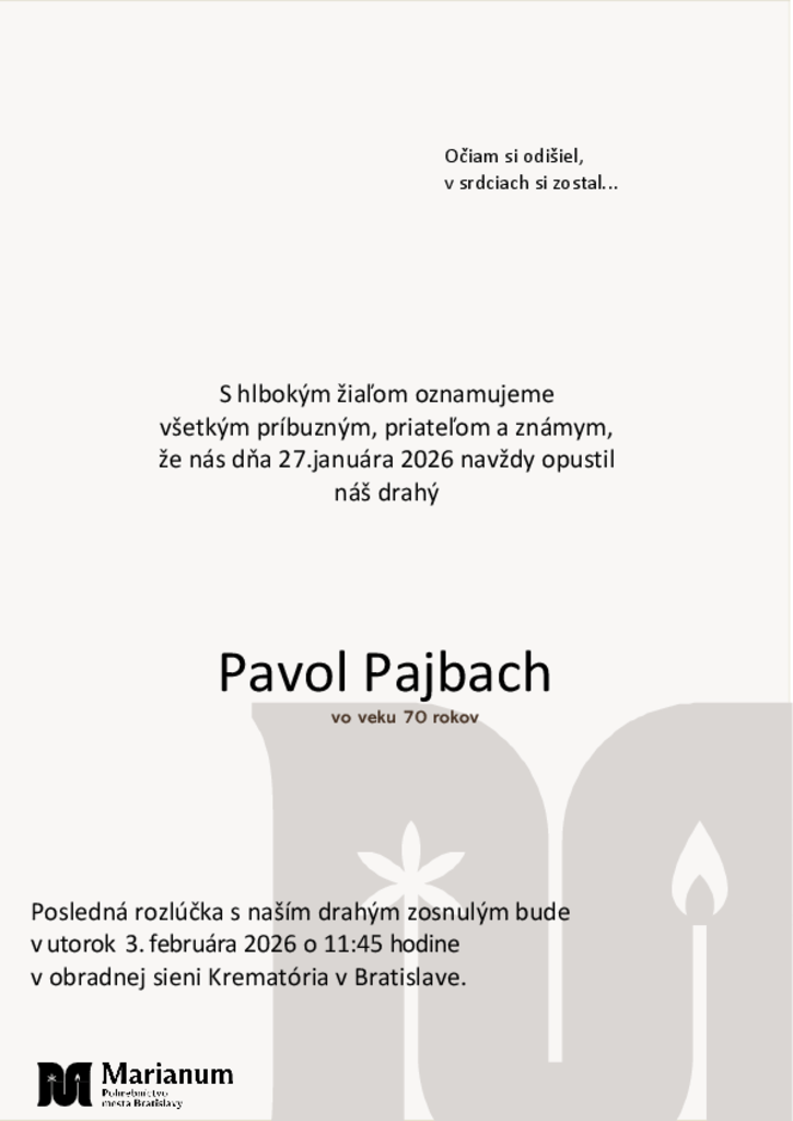 Napíšte odkaz pre pozostalých a uctite si pamiatku zosnulého zapálením virtuálnej sviečky.