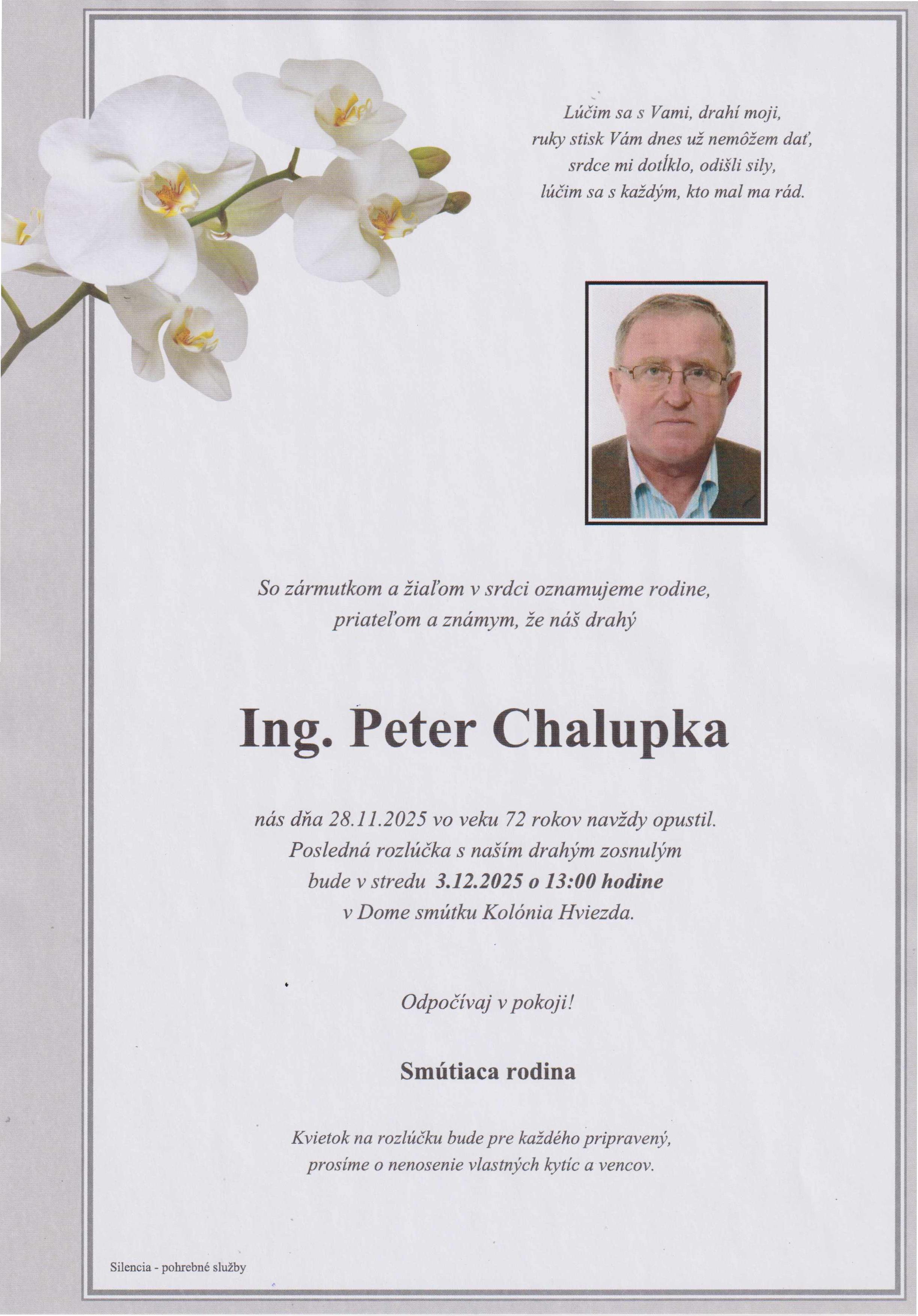 Ach Peter, zapaľujem so slzami v očiach sviečku ... zostali nám už len spomienky a veľký žiaľ. Ty budeš veľmi chýbať nielen rodine ale aj nám, čo sme s Tebou roky v práci prežili. Rodine vyjadrujeme úprimnú sústrasť, je veľmi ťažké sa zmieriť s odchodom tak milovaného človeka ....