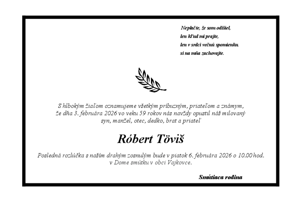 Túto kyticu, ako prejav úcty, nechal/a doručiť na poslednú rozlúčku Patrik Pristáš 4. 2. 2026