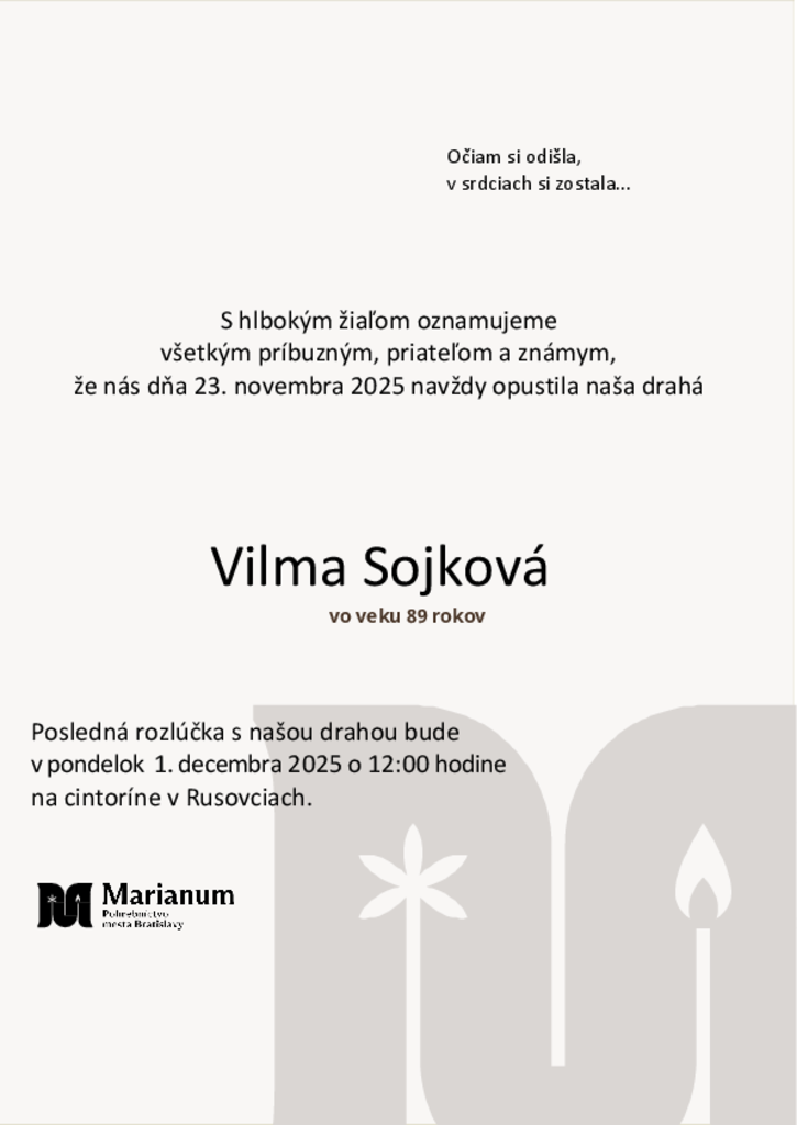 Napíšte odkaz pre pozostalých a uctite si pamiatku zosnulého zapálením virtuálnej sviečky.