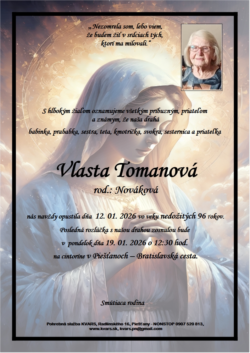 Pohreb zabezpečuje: Pohrebníctvo KVARS