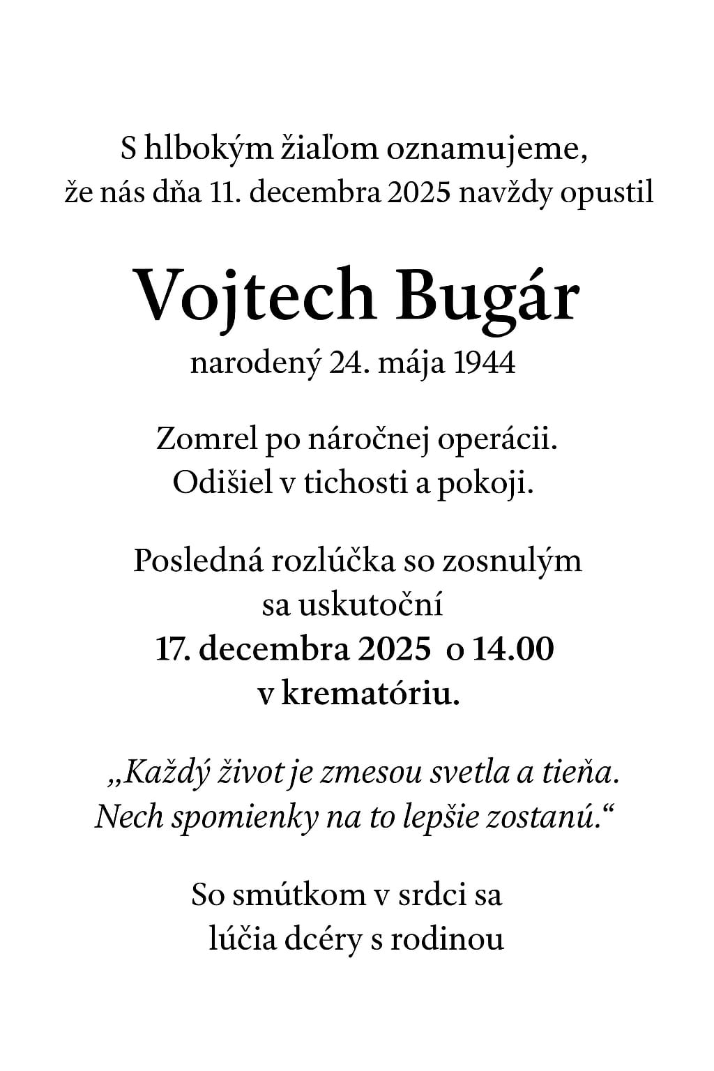 Napíšte odkaz pre pozostalých a uctite si pamiatku zosnulého zapálením virtuálnej sviečky.