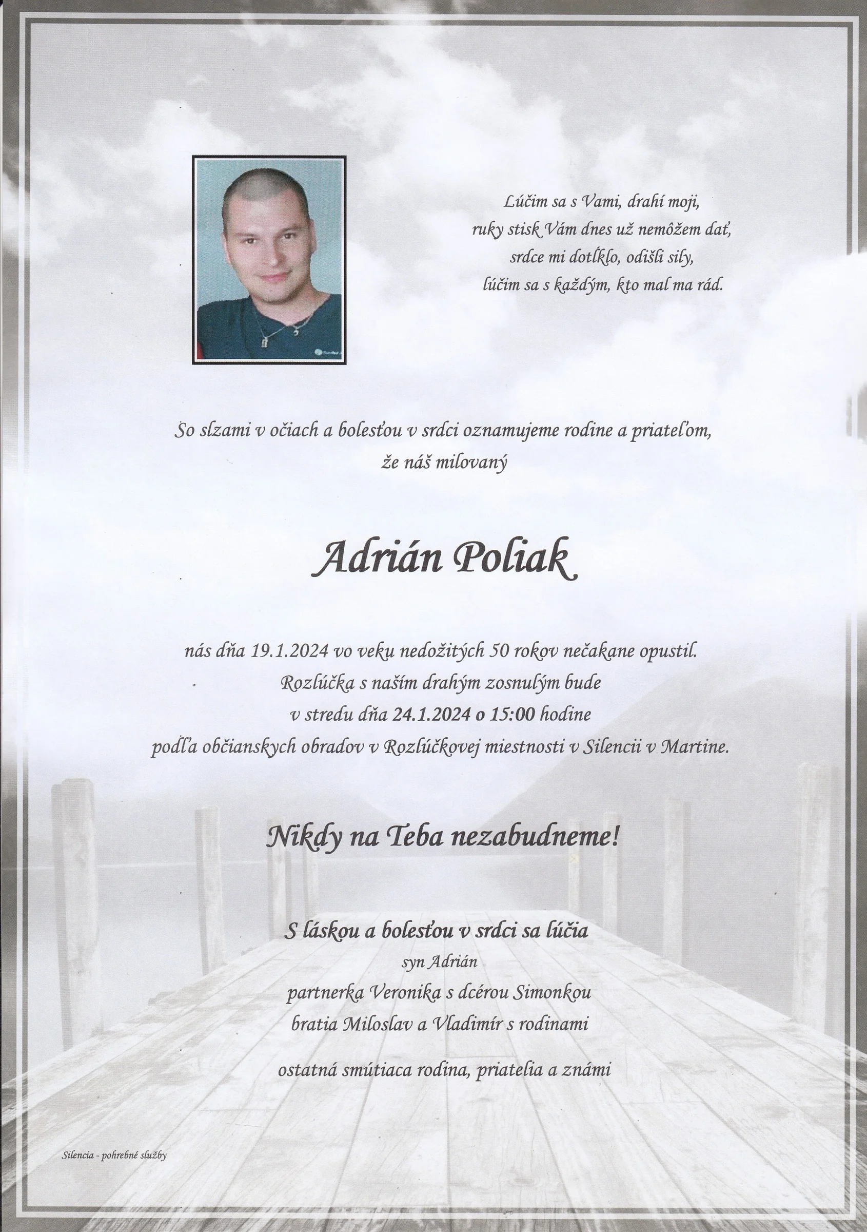 Zatiaľ neboli pridané žiadne kondolencie.
