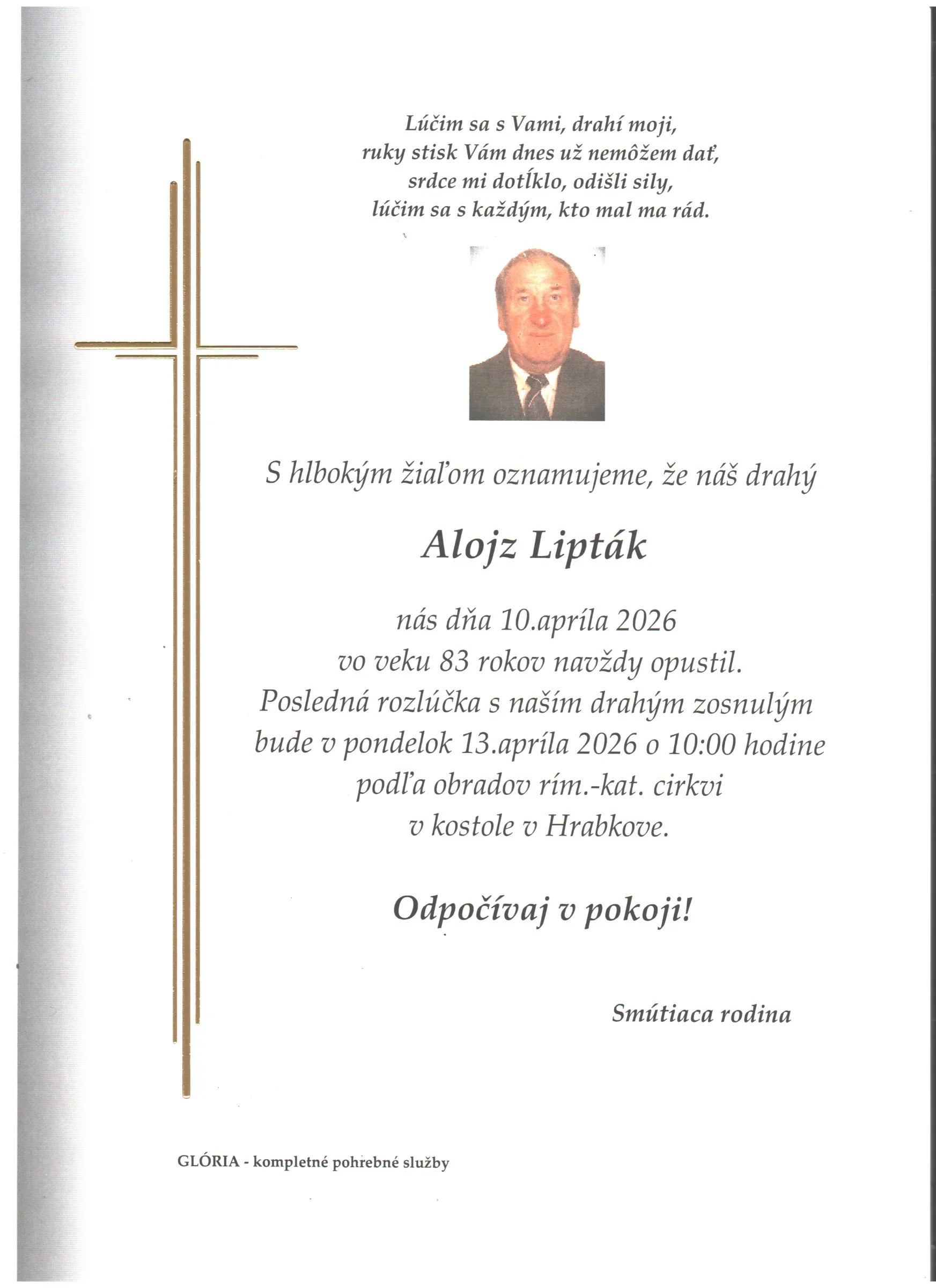 Kolektív Pohrebnej služby Glória vyjadruje úprimnú účasť v bolestivých chvíľach. Prajeme rodine a blízkym veľa pokoja a vzájomnej podpory.