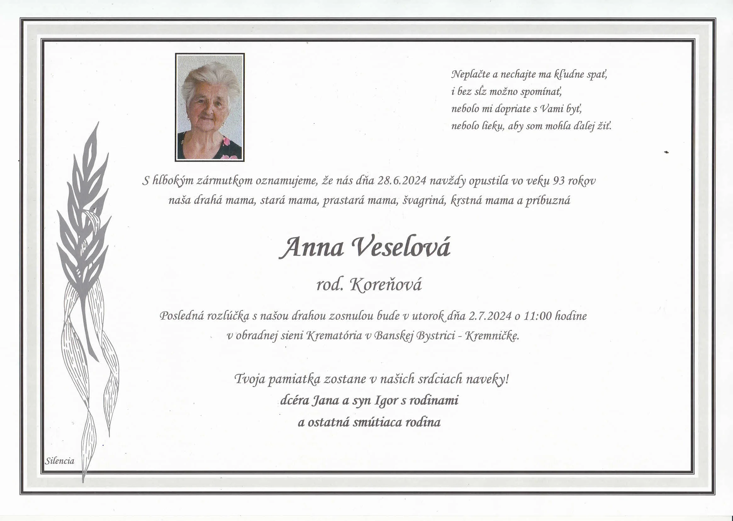 Zatiaľ neboli pridané žiadne kondolencie.