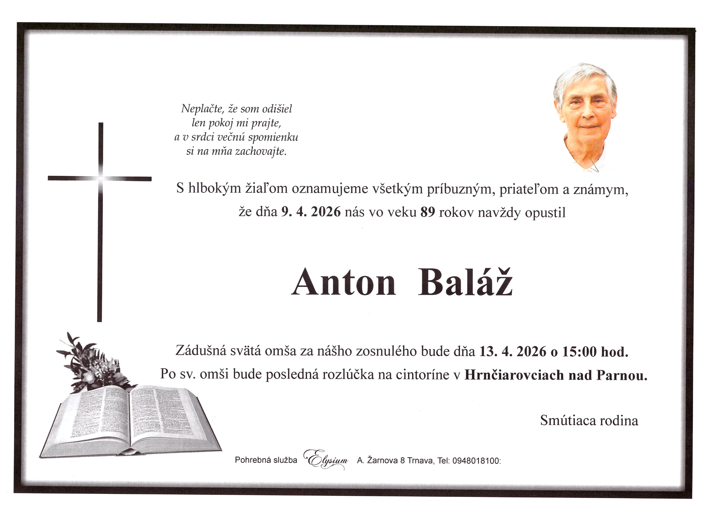 Kolektív Pohrebnej služby Elysium vyjadruje úprimnú účasť v bolestivých chvíľach. Prajeme rodine a blízkym veľa pokoja a vzájomnej podpory.