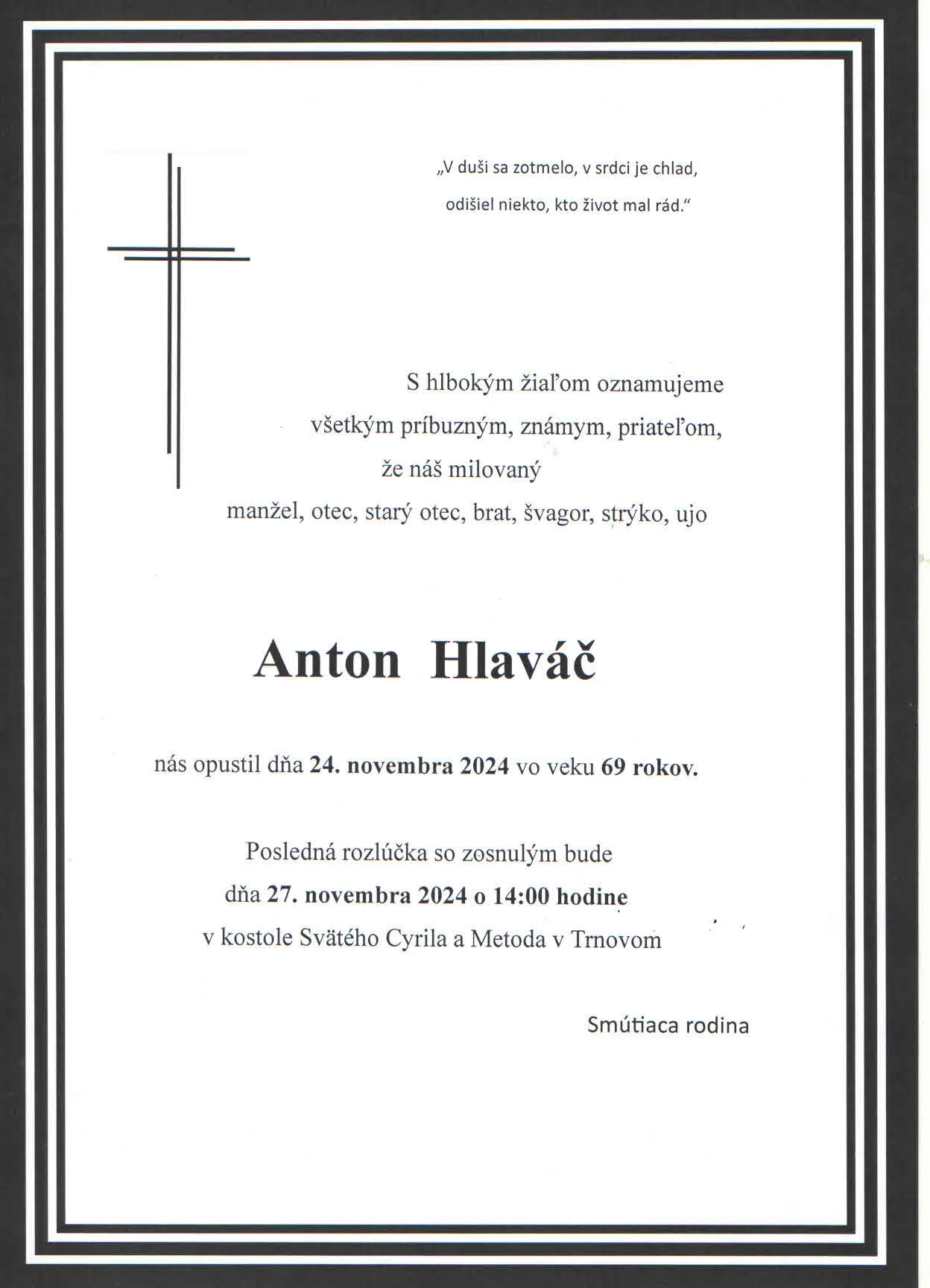 Úprimnú sústrasť. Od dcéry brata Stana Hlaváča.