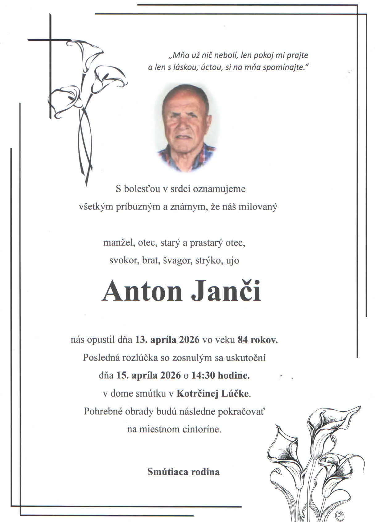 Kolektív Pohrebnej služby Funeral vyjadruje úprimnú sústrasť rodine a blízkym. Prajeme Vám veľa síl v chvíľach smútku.