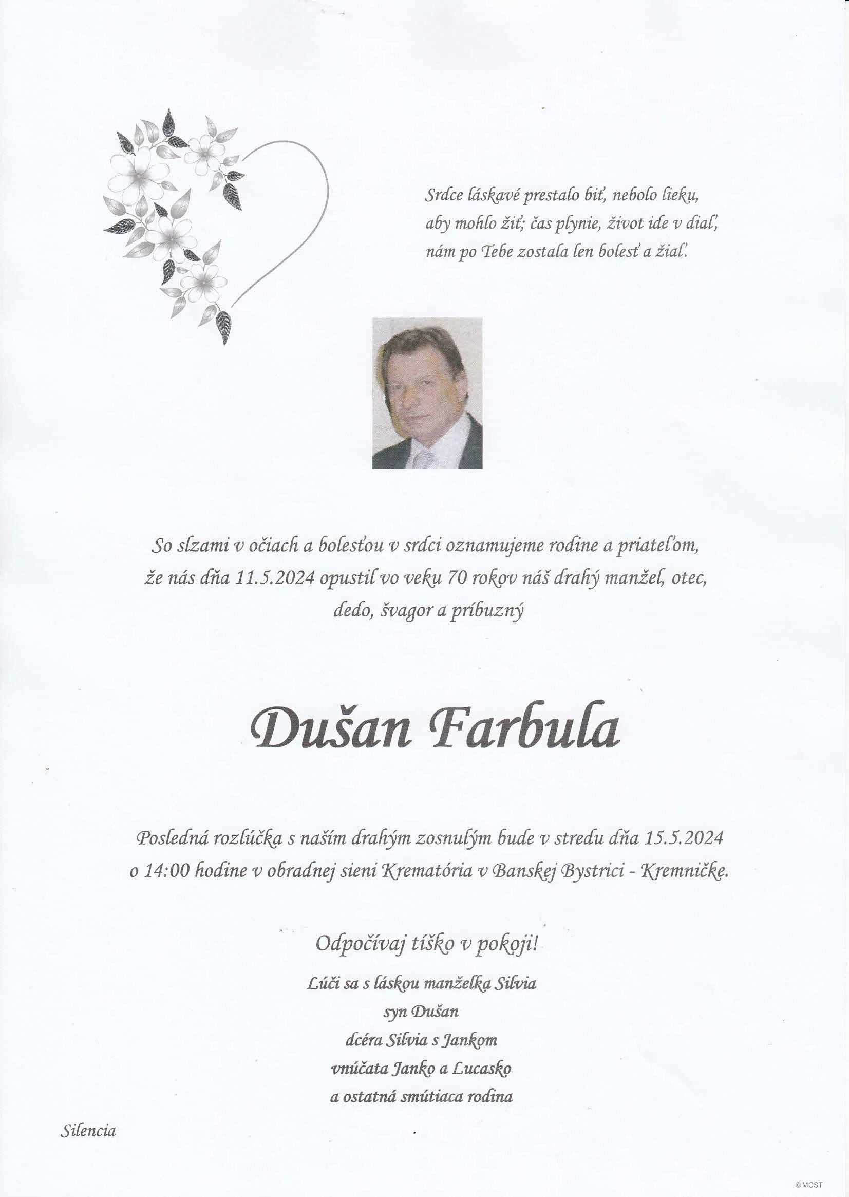 Zatiaľ neboli pridané žiadne kondolencie.