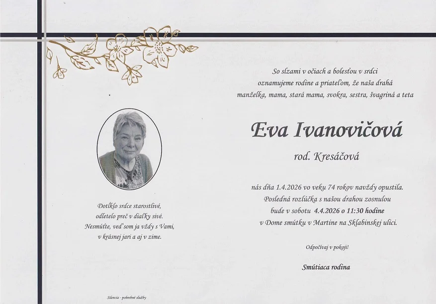 Kolektív Pohrebnej služby Silencia vyjadruje úprimnú účasť v bolestivých chvíľach. Prajeme rodine a blízkym veľa pokoja a vzájomnej podpory.