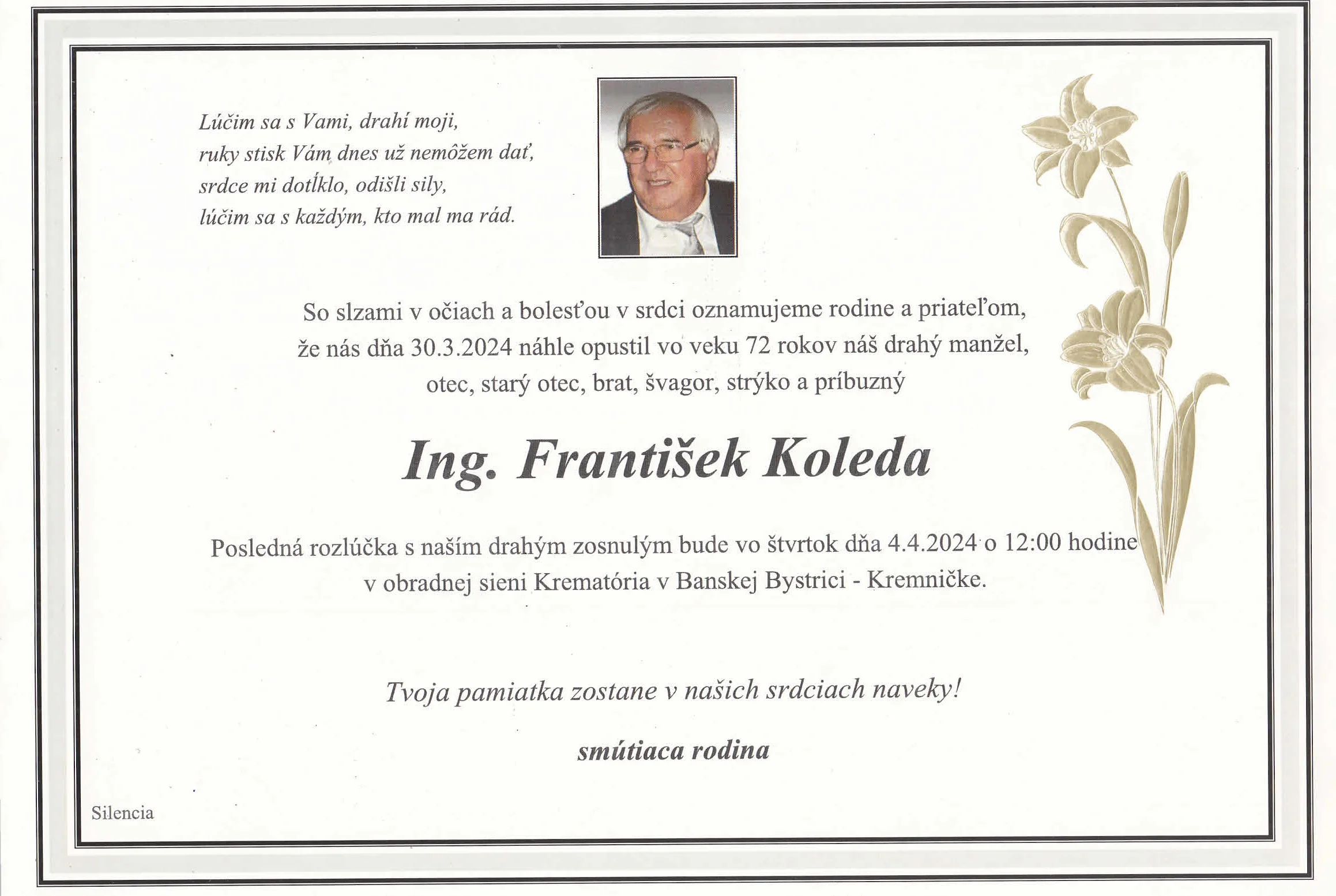 Zatiaľ neboli pridané žiadne kondolencie.