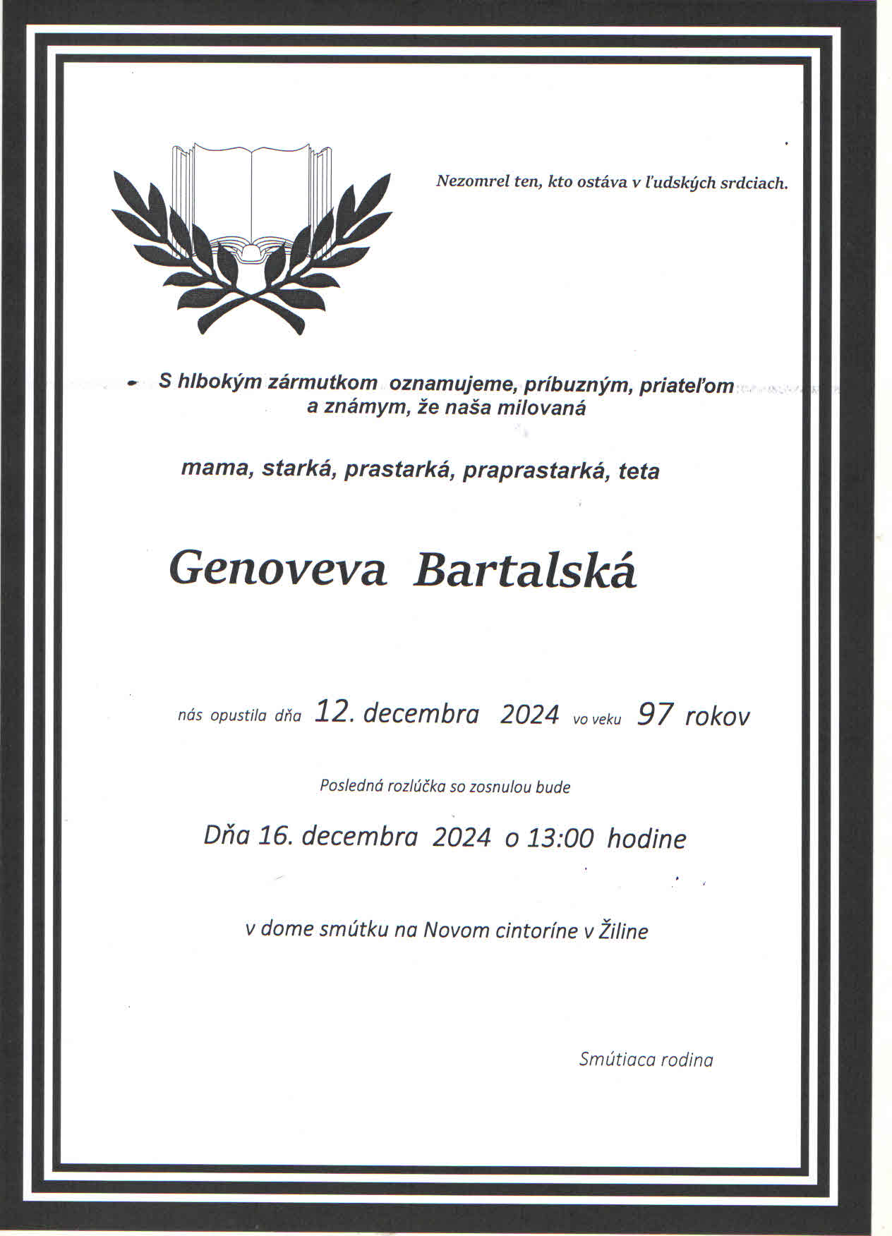 Zatiaľ neboli pridané žiadne kondolencie.