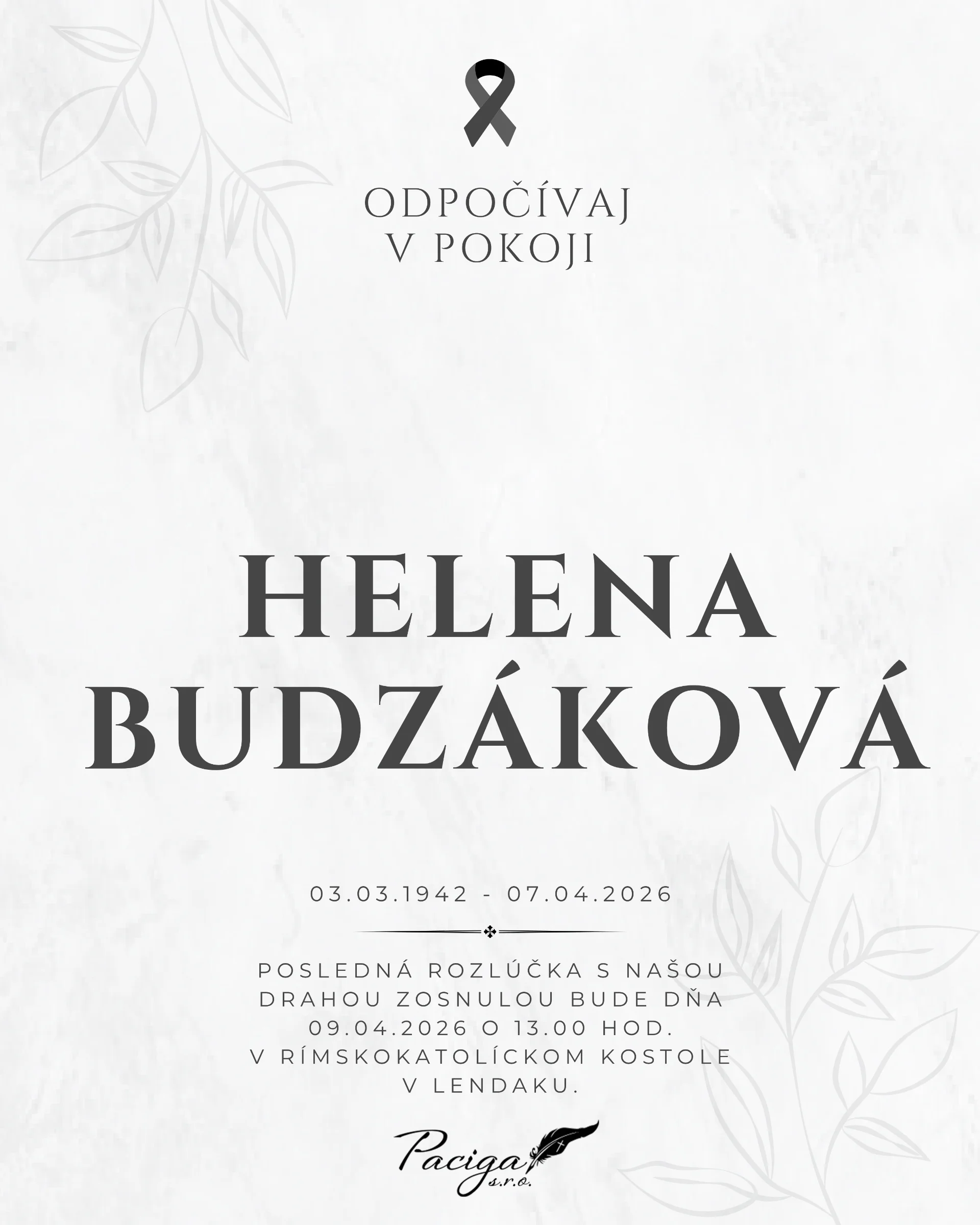 Kolektív Pohrebnej služby Paciga sa pripája k prejavom sústrasti a vyjadruje účasť všetkým pozostalým. Nech Vám zostane oporou láskavá spomienka.