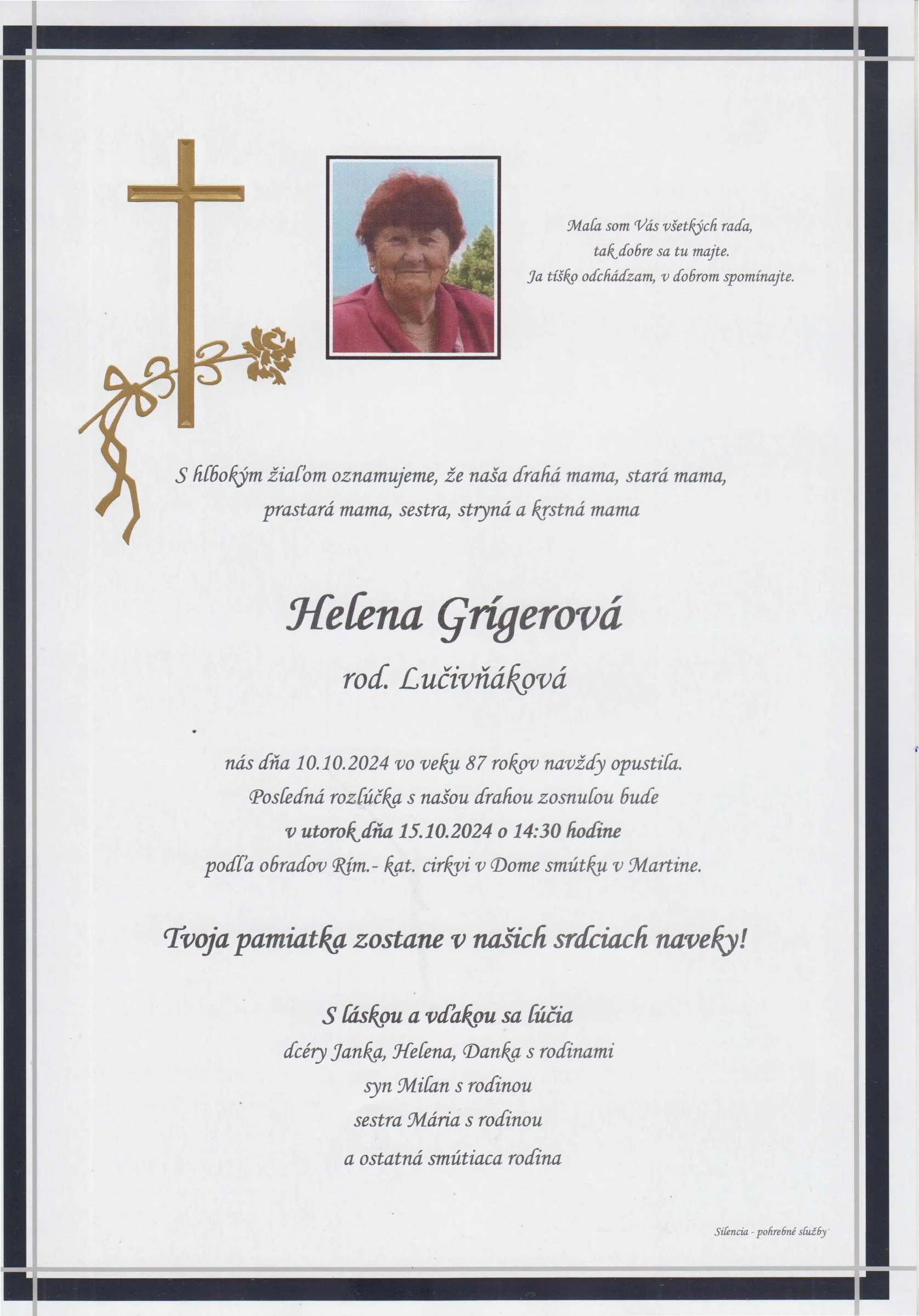 Zatiaľ neboli pridané žiadne kondolencie.